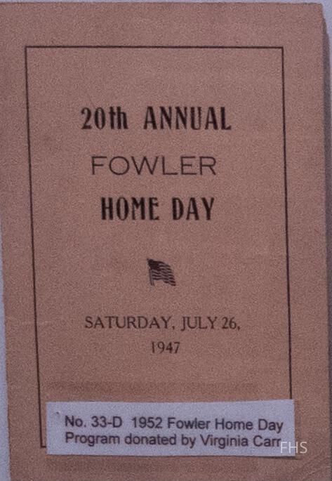 The 20th Annual Fowler Home Day program from 1947. It was donated by Virginia Carr.Cataloged By