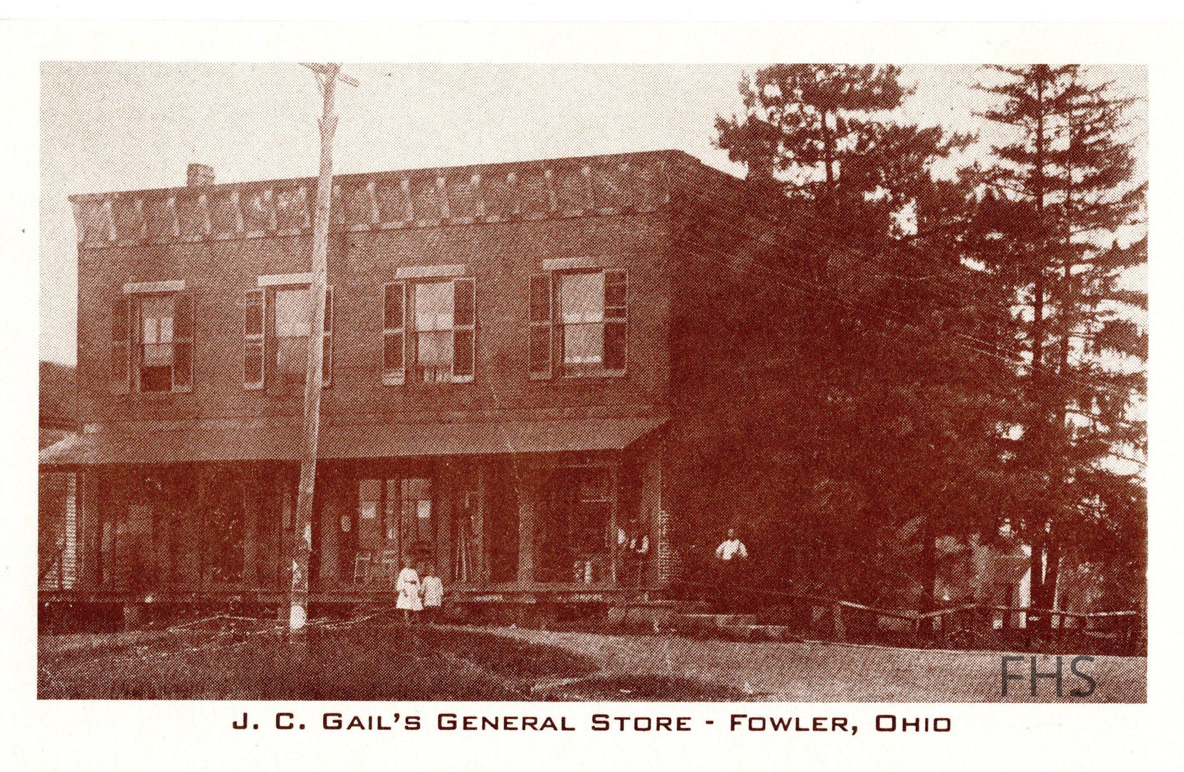 A postcard of the J. C. Gail General store in Fowler Center.Cataloged By