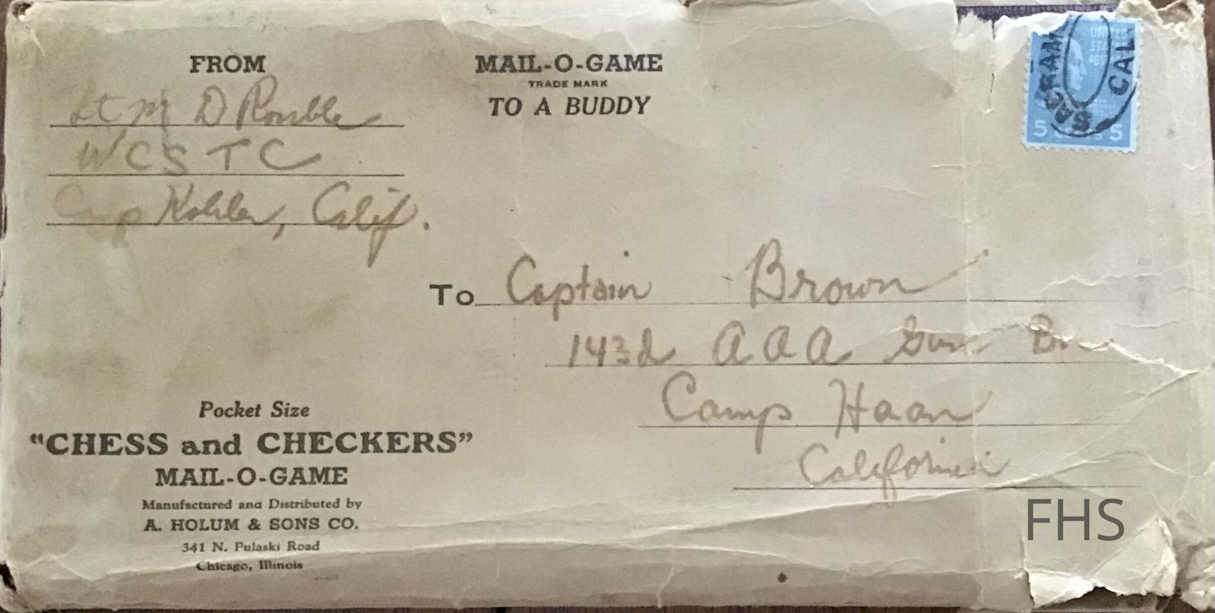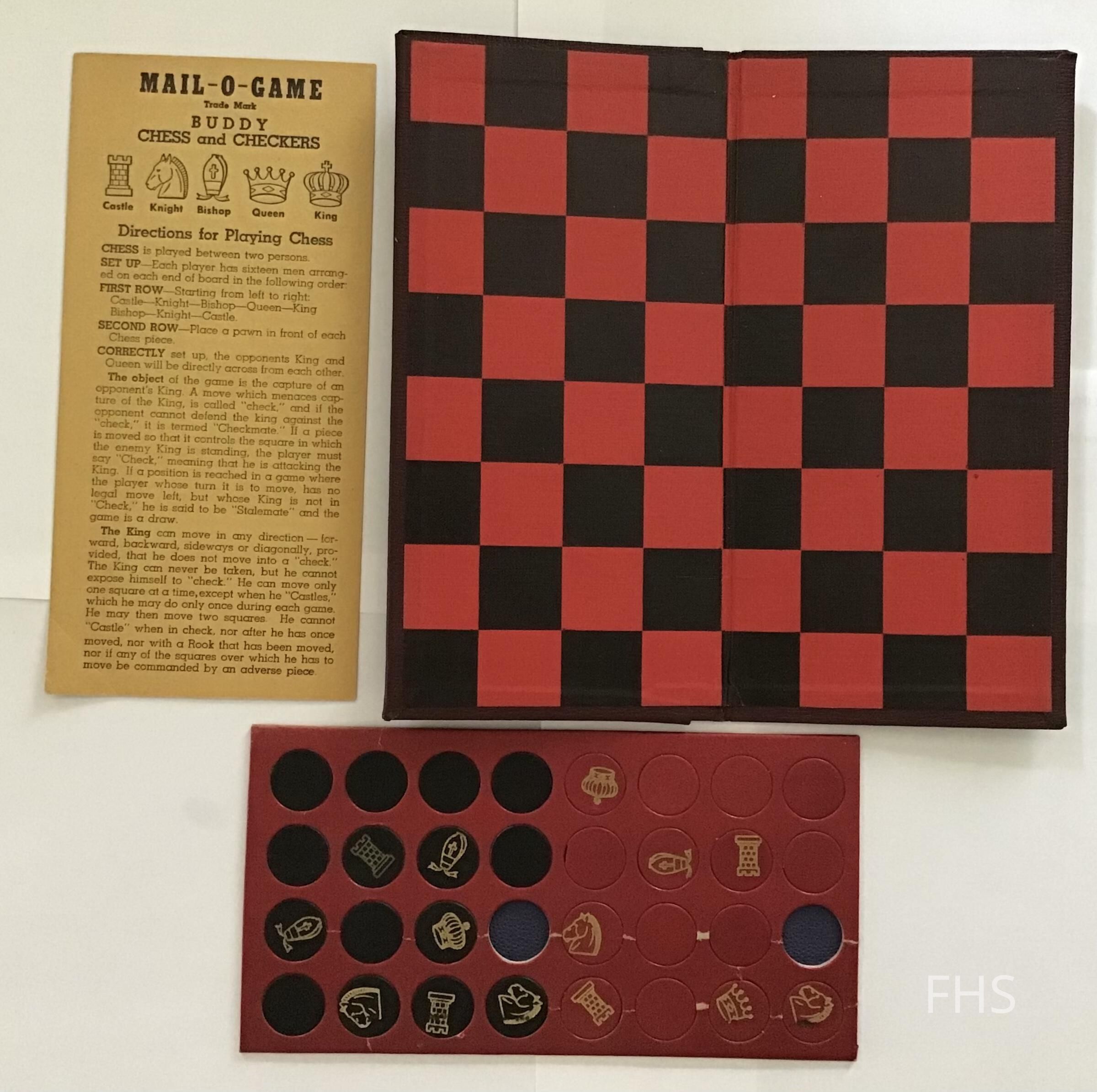 A Mail-O-Game Chess set from World War era between 1941 and 1945. It was acquired from Marilyn James Sherer.Cataloged By