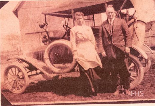 A photograph of Mr. And Mrs. Harry Forward and their pre-1915 Model T Ford. They lived at the corner of Ridge Rd. And Route 305. Harry Forward was an early RFD mail carrier.