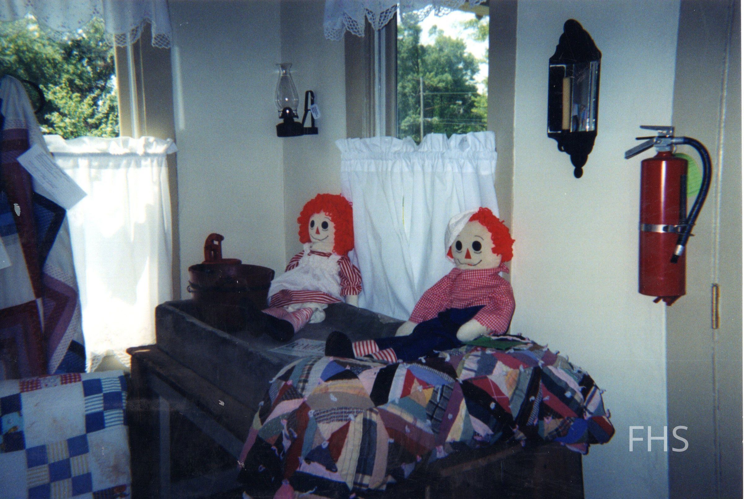 A photograph of a temporary display of quilts at the Butts Museum by the Fowler Historical Society.Cataloged By