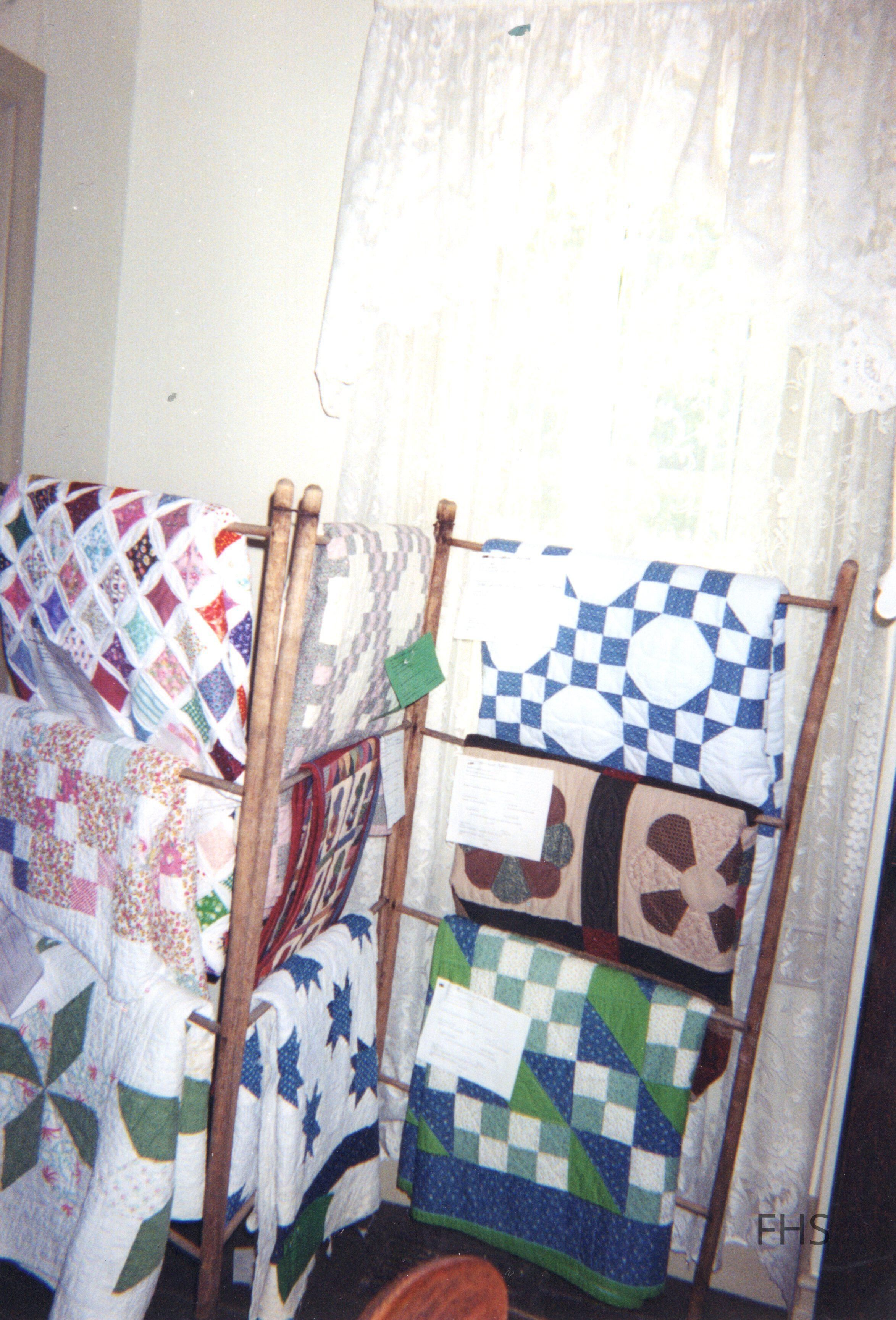 A photograph of a temporary display of quilts at the Butts Museum by the Fowler Historical Society.Cataloged By