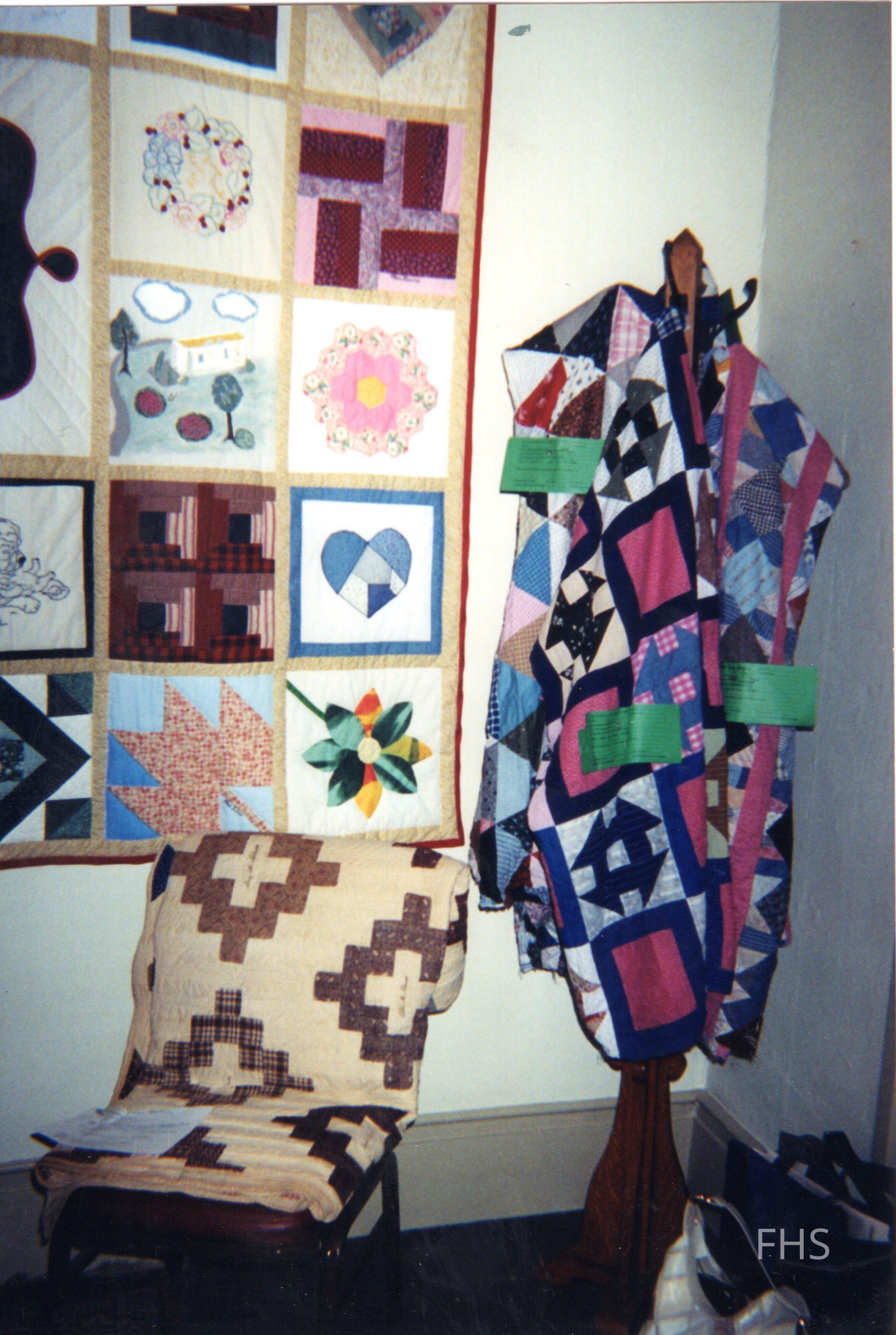 A photograph of a temporary display of quilts at the Butts Museum by the Fowler Historical Society.Cataloged By