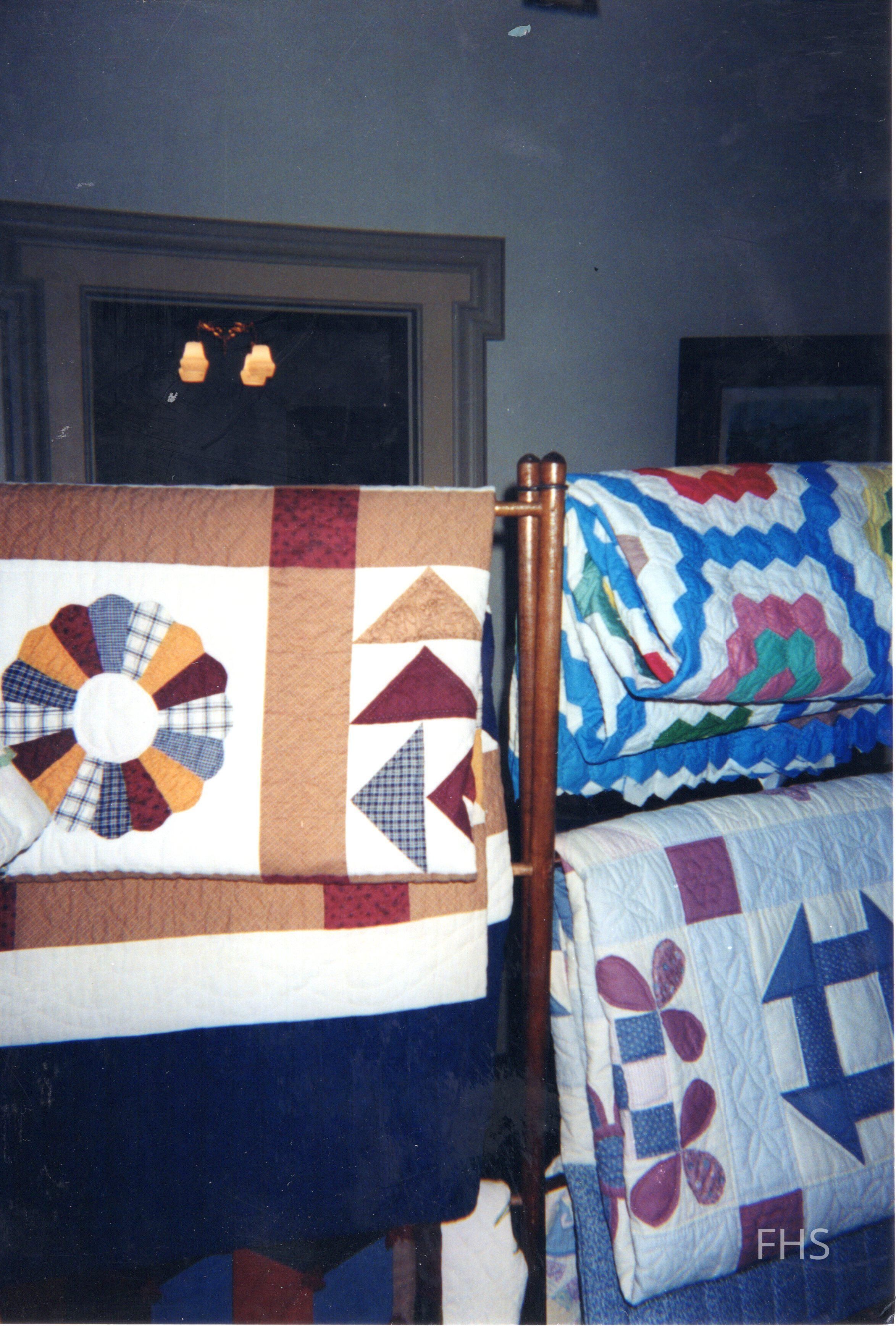 A photograph of a temporary display of quilts at the Butts Museum by the Fowler Historical Society.Cataloged By