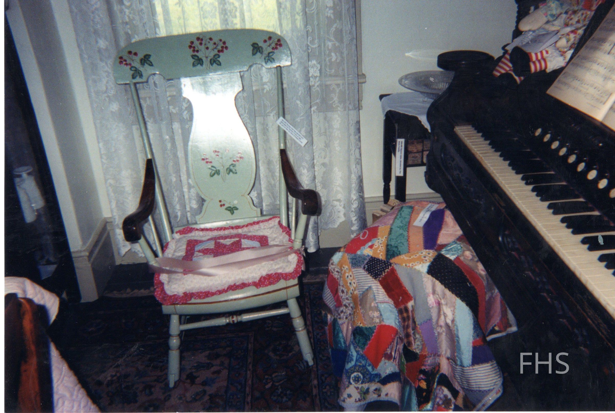 A photograph of a temporary display of quilts at the Butts Museum by the Fowler Historical Society.Cataloged By