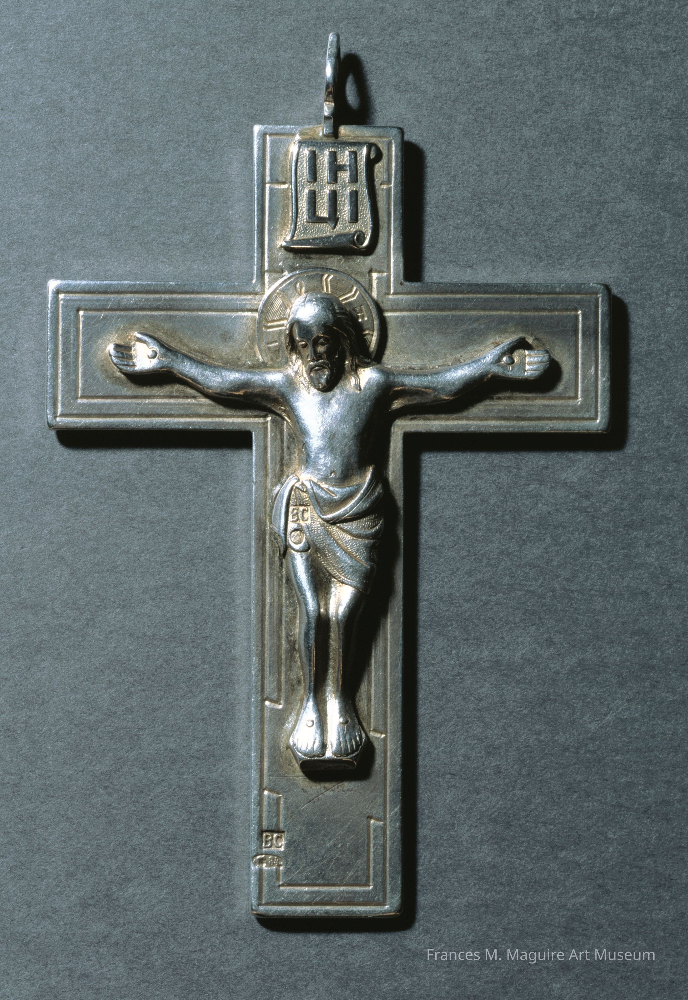 18th-c. Faberge silver pectoral cross pendant with Russian inscription on reverseMade/Created