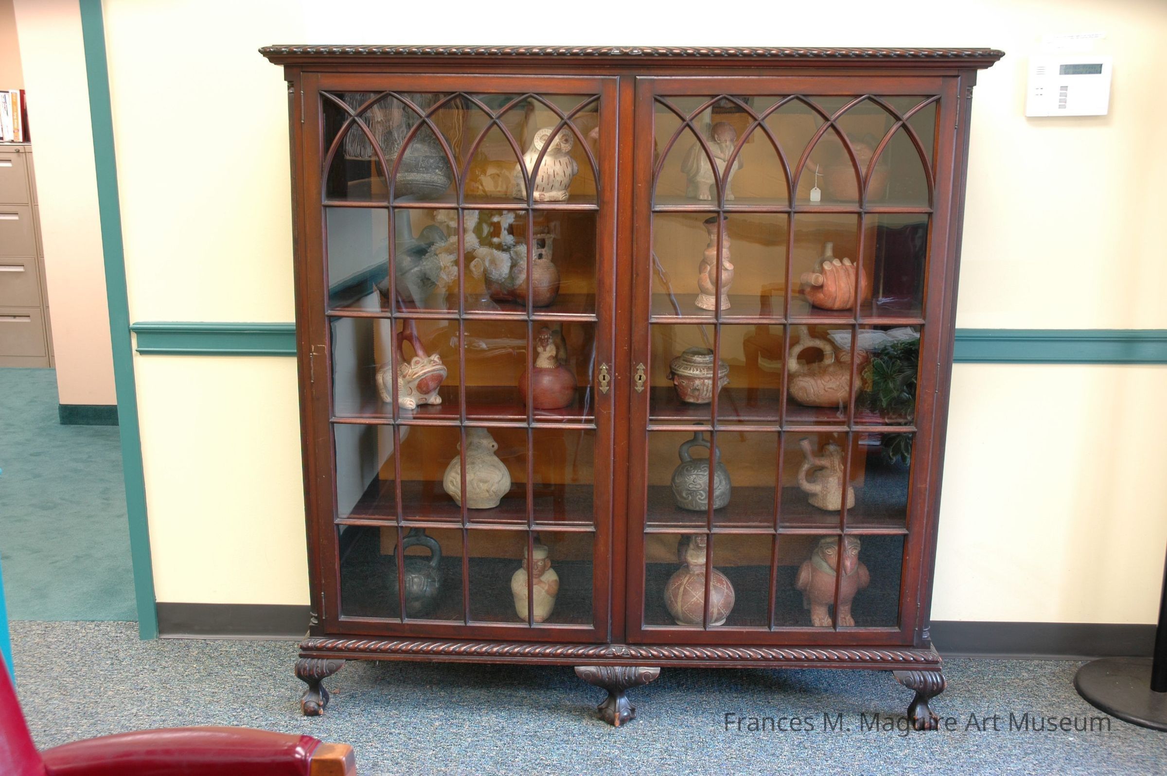 19th-c. mahogany bookcase with two glass doors. One of American artist Margaret Gest's household items.Dimensions