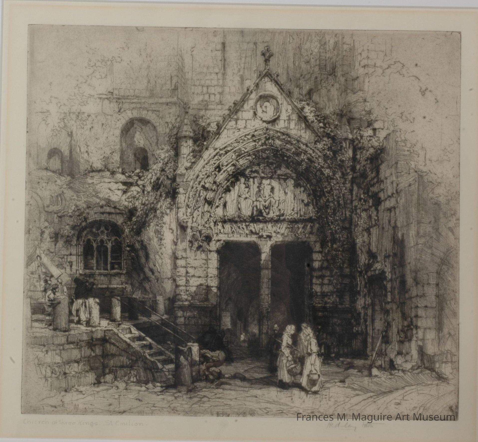 19th-c. etching of what is known today as the Saint-Émilion Monolithic Church in Saint-Émilion, France.Made/Created