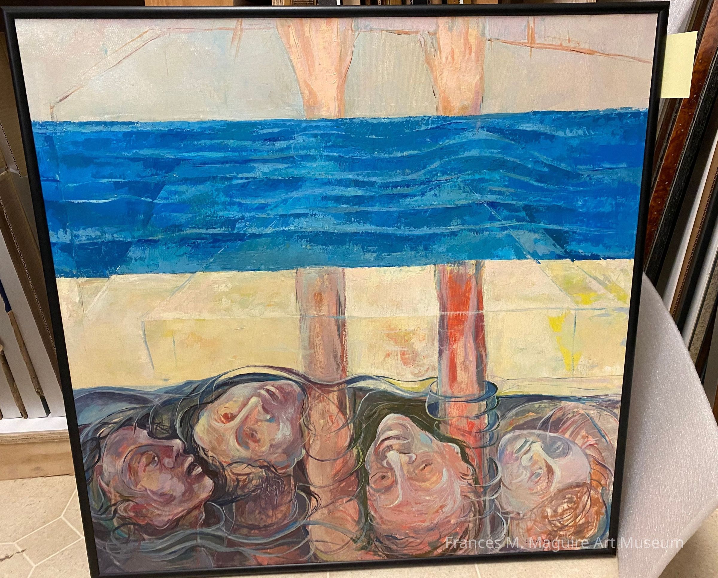 20th-c. oil painting titled created by the artist as an "omaggio agli emigranti" or "homage to emigrants."Made/Created