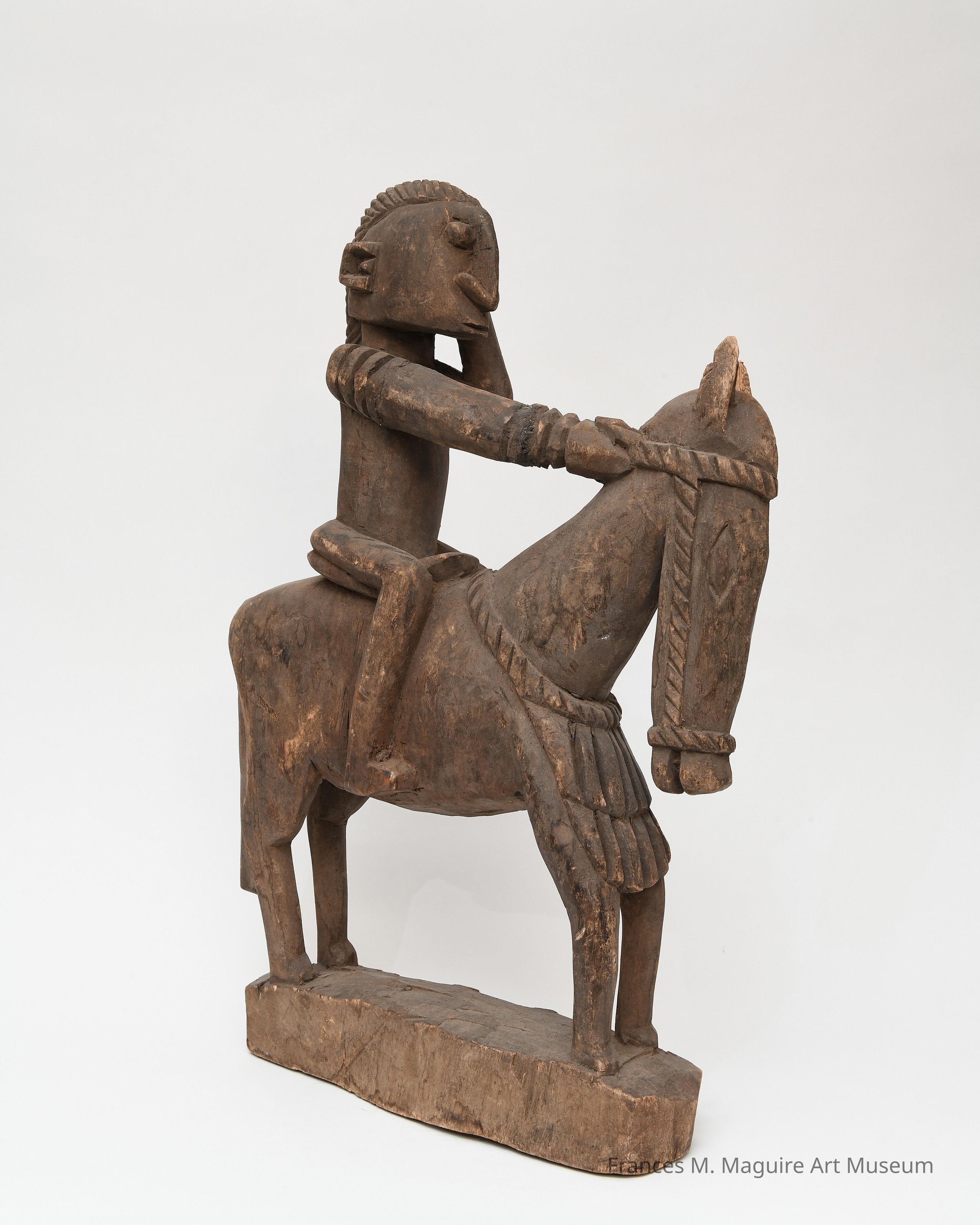 20th-c. sculpture of a man riding a horse from the Dogon people in Mali.Dimensions
