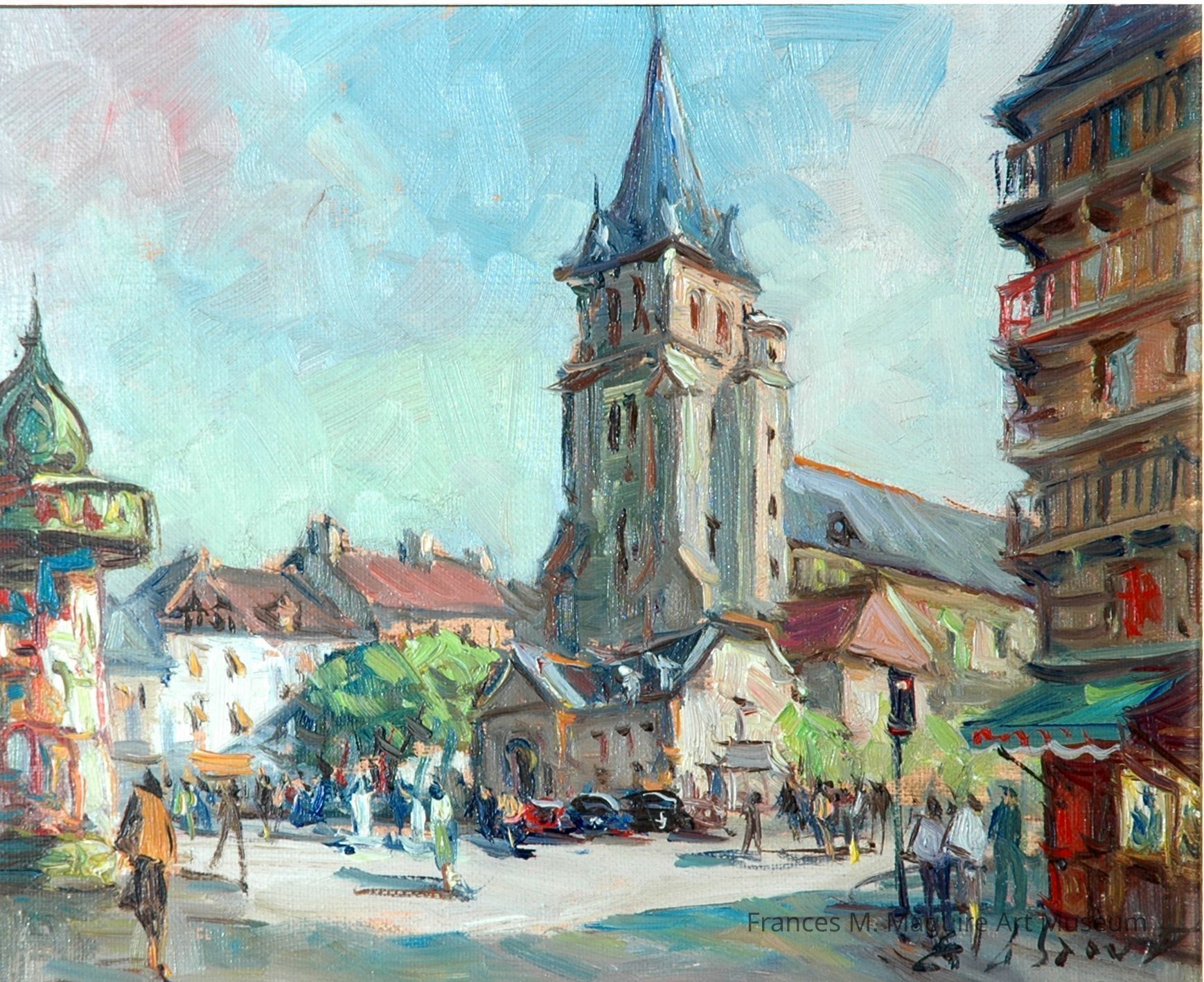 20th-c. painting of l'Église Saint-Germain-des-Prés, the oldest church in Paris, France.Made/Created