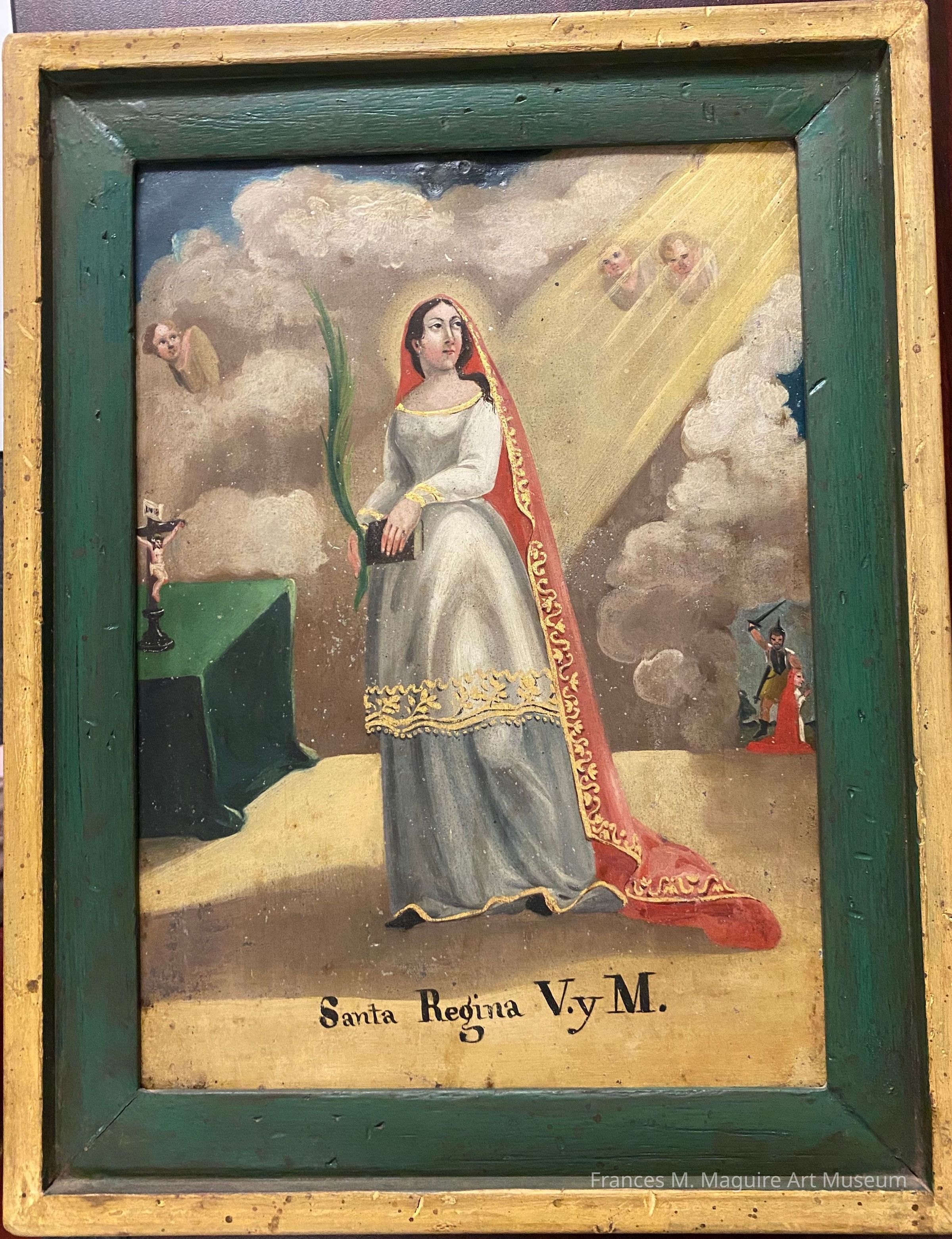 Mexican retablo of Saint Regina, the virgin and martyr.Interpretative Labels