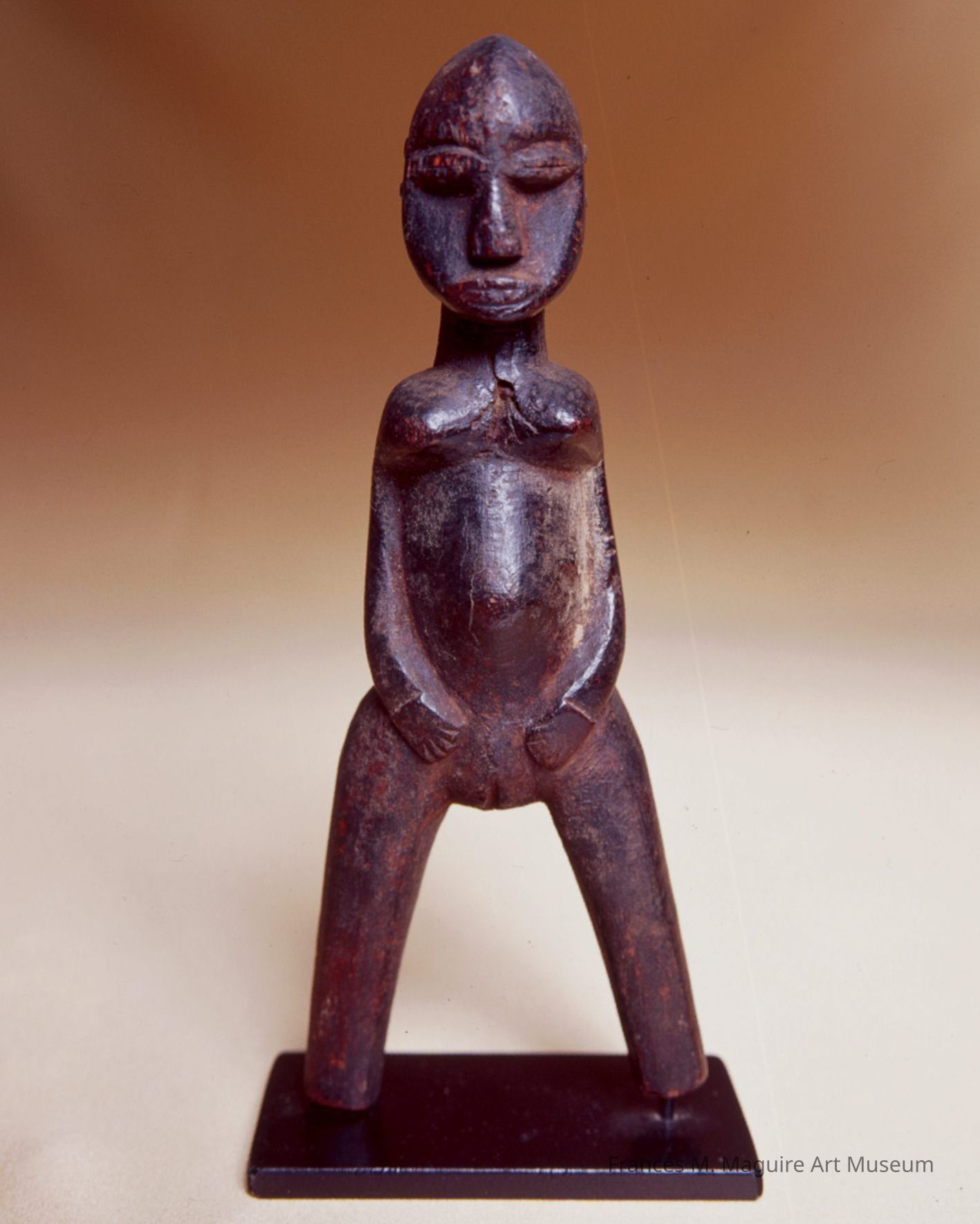 These wooden statues, produced in Burkina Faso sometime during the 19th or 20th centuries, embody the Lobi people's devotion to providing and protecting for their families. For the Lobi, femininity symbolized the fertility of nature and the continuation of family lineage. Bateba figures were crafted to resemble their owners, with distinct features and hairstyles. The Lobi believed that hair held sacred power, safeguarding against malevolent spirits. These statues served as protectors of their territory, and were placed in homes to ward off evil spirits. The Lobi slingshot was crafted to hunt small animals for food or entertainment. The female form of the slingshot is presumably a representation of the owner or the artist. Both sculptures in their own right are an embodiment of providing and protecting.Label Type