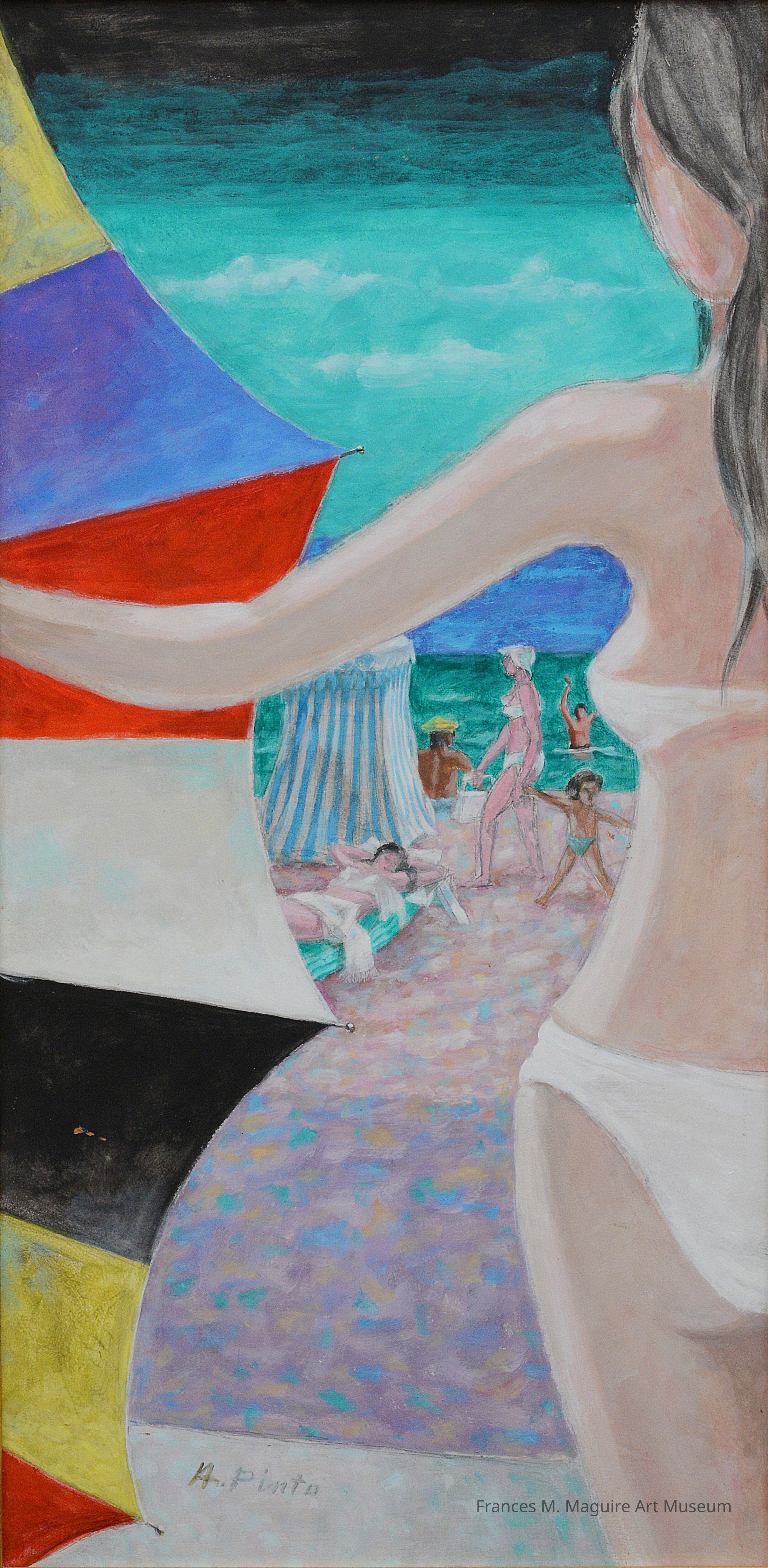 Oil-on-board painting of Bather and Beach Umbrella.Made/Created