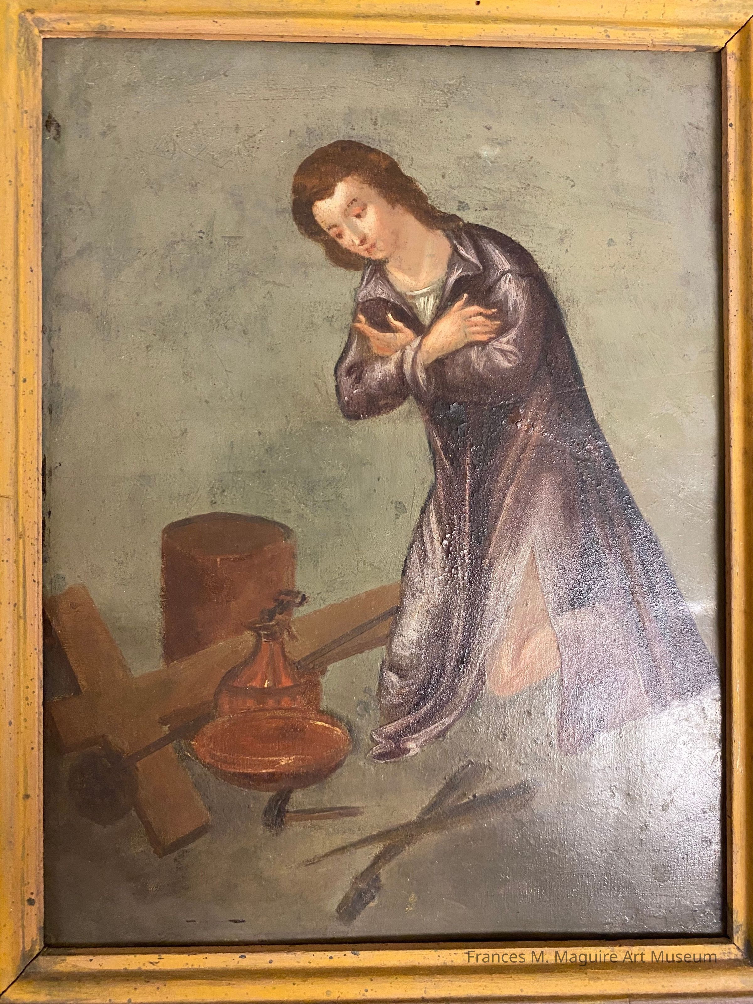 Retablo of a young Christ contemplating the instruments of the passion.Dimensions