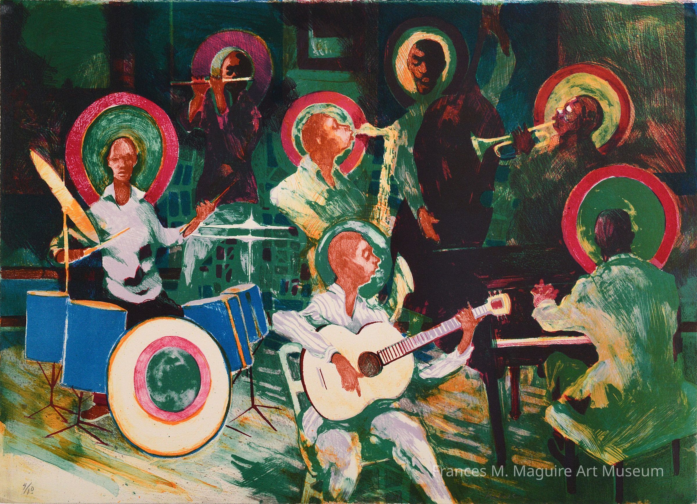 20th-c. offset lithograph of a blues band. Ed. 4/80Made/Created