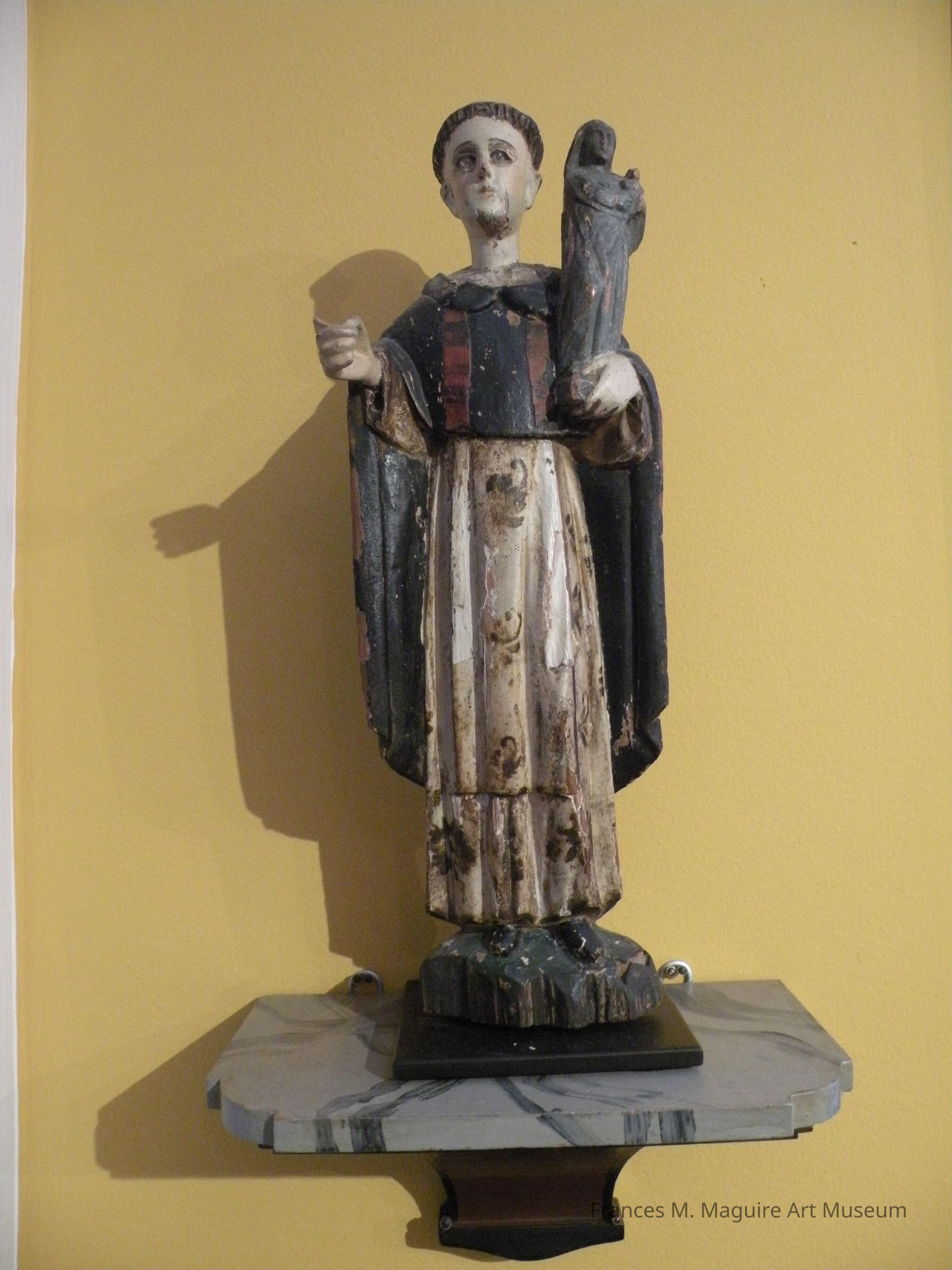 19th-c. bulto of St. Hyacinth (from Mexico or Guatemala) made of polychromed wood with glass eyes.
