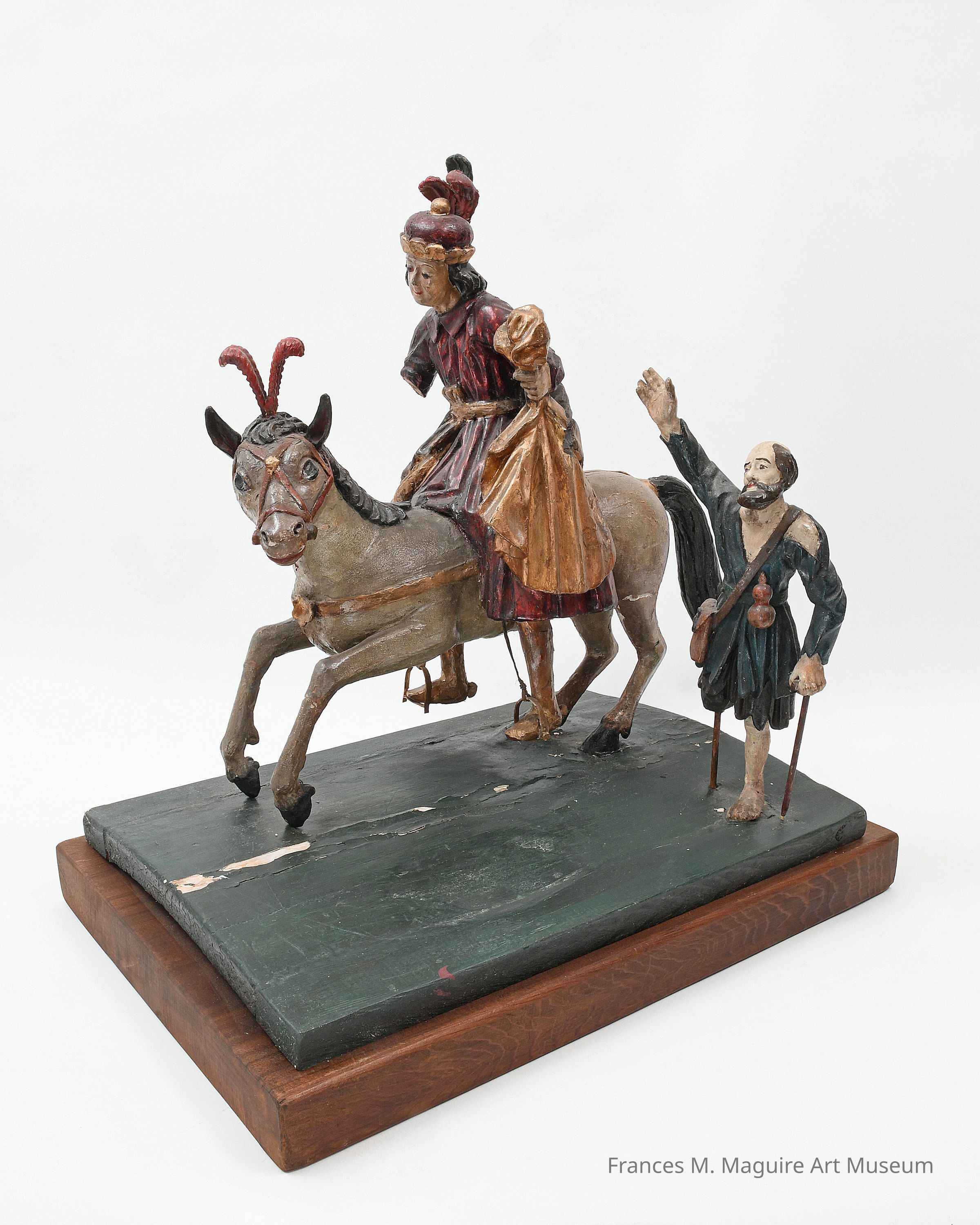 19th-c. bulto of St. Martin of Tours on a horse giving part of his cloak to a beggar.Dimensions