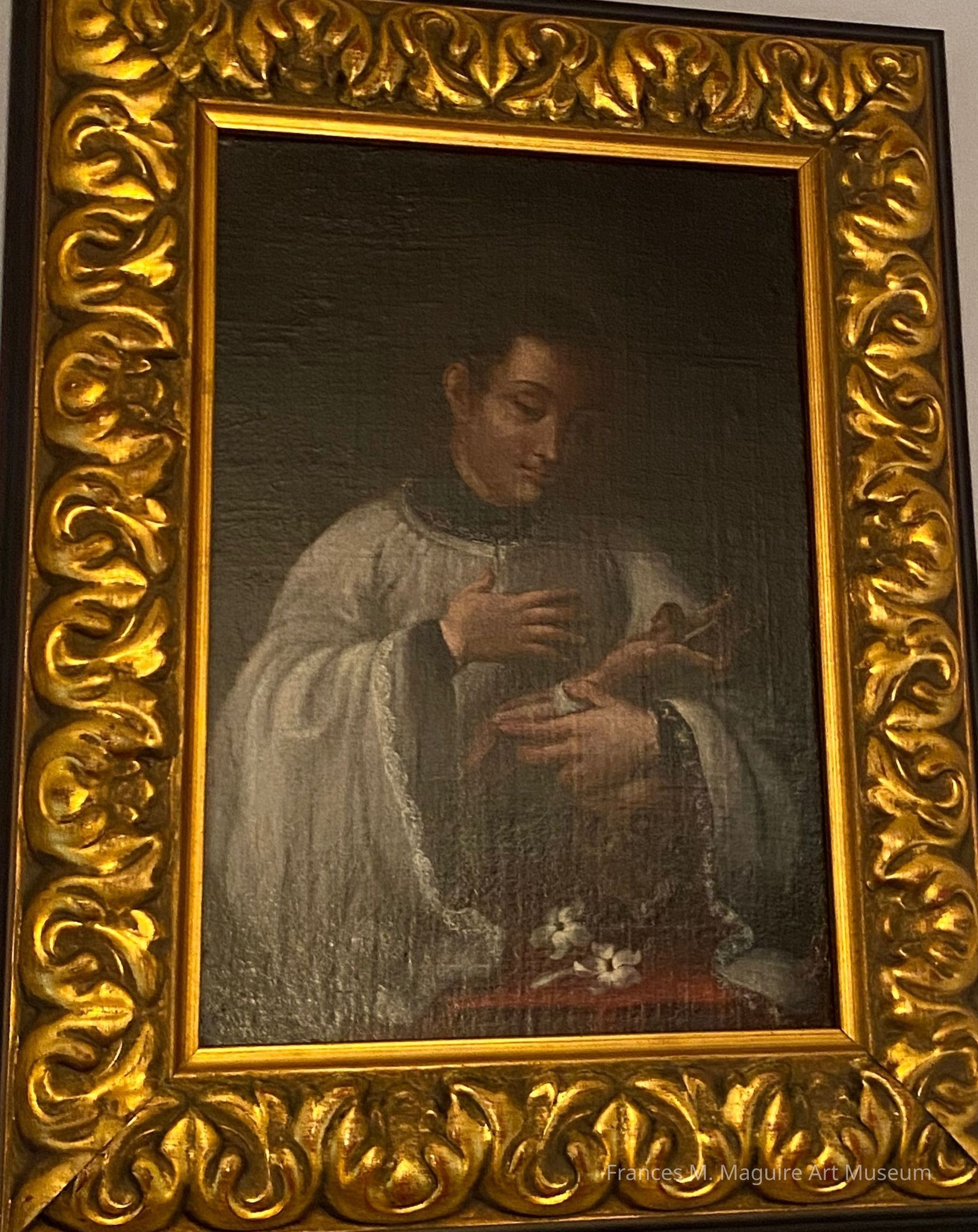 Early-19th-c. Spanish painting of St. Aloysius Gonzaga.Dimensions