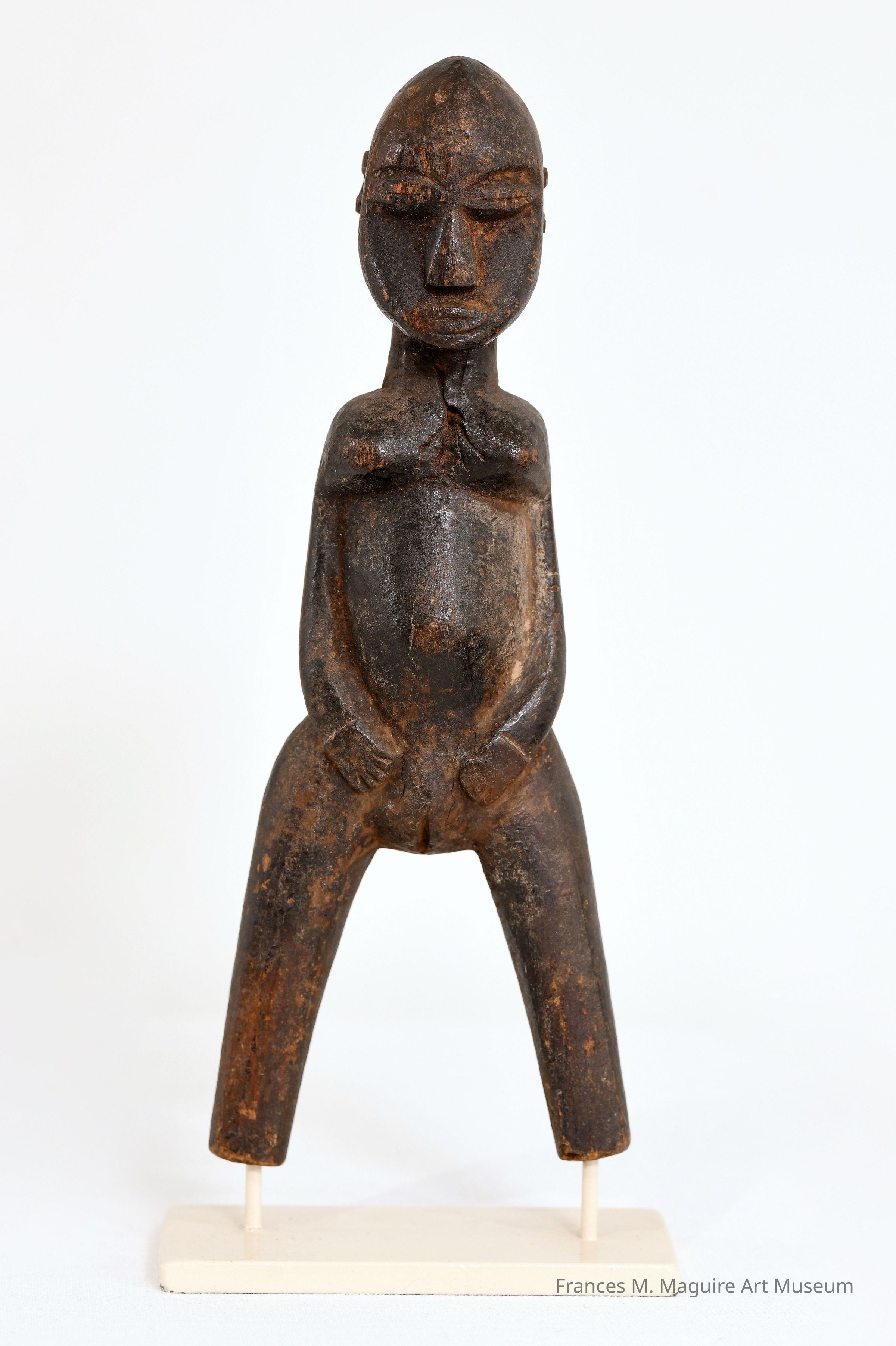 These wooden statues, produced in Burkina Faso sometime during the 19th or 20th centuries, embody the Lobi people's devotion to providing and protecting for their families. For the Lobi, femininity symbolized the fertility of nature and the continuation of family lineage. Bateba figures were crafted to resemble their owners, with distinct features and hairstyles. The Lobi believed that hair held sacred power, safeguarding against malevolent spirits. These statues served as protectors of their territory, and were placed in homes to ward off evil spirits. The Lobi slingshot was crafted to hunt small animals for food or entertainment. The female form of the slingshot is presumably a representation of the owner or the artist. Both sculptures in their own right are an embodiment of providing and protecting.Label Type
