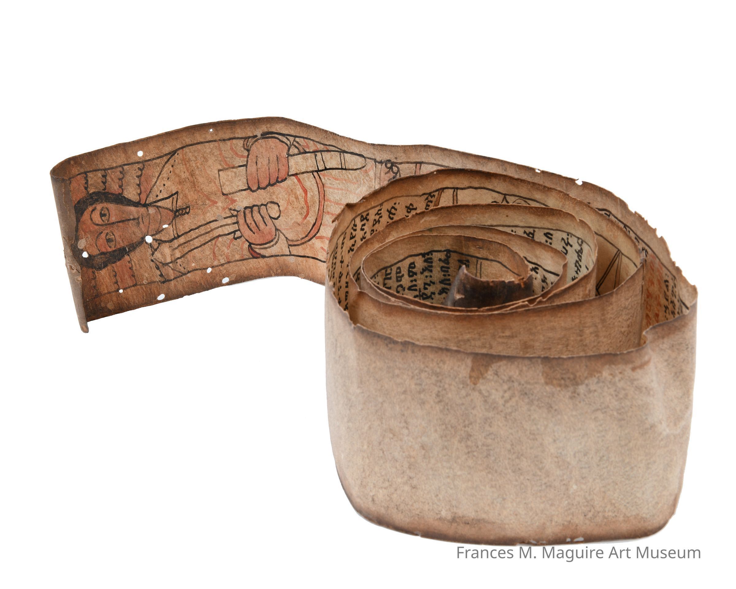 Making healing scrolls in Ethiopia is part of a larger process of preventing or curing physical and spiritual illness. Scrolls typically feature protective blessings and prayers to thwart or expel demons and evil spirits, as well as descriptions of herbal remedies for physical ailments. Often accompanying the text are depictions of archangels and talismanic images. Healing scrolls are either kept at home for prayer or carried for protection during daily activities. They are created by specialists called däbtäras, who, though not ordained as priests, are highly trained in theology and oversee the liturgy and music in the Ethiopian church. By dint of their command of writing, däbtäras are regarded as magicians, and their practice of healing combines their skill in writing with their mastery of medicinal practices and talismanic imagery.