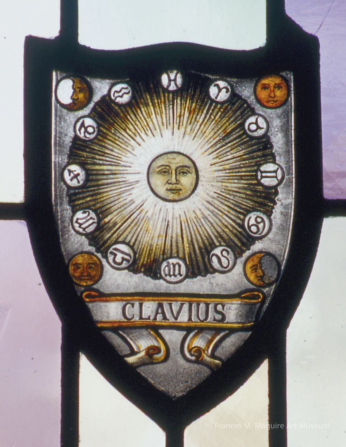 Stained-glass shield commemorating Christoph Clavius (Klau) (1537-1612), a German Jesuit mathematician and astronomer.Made/Created