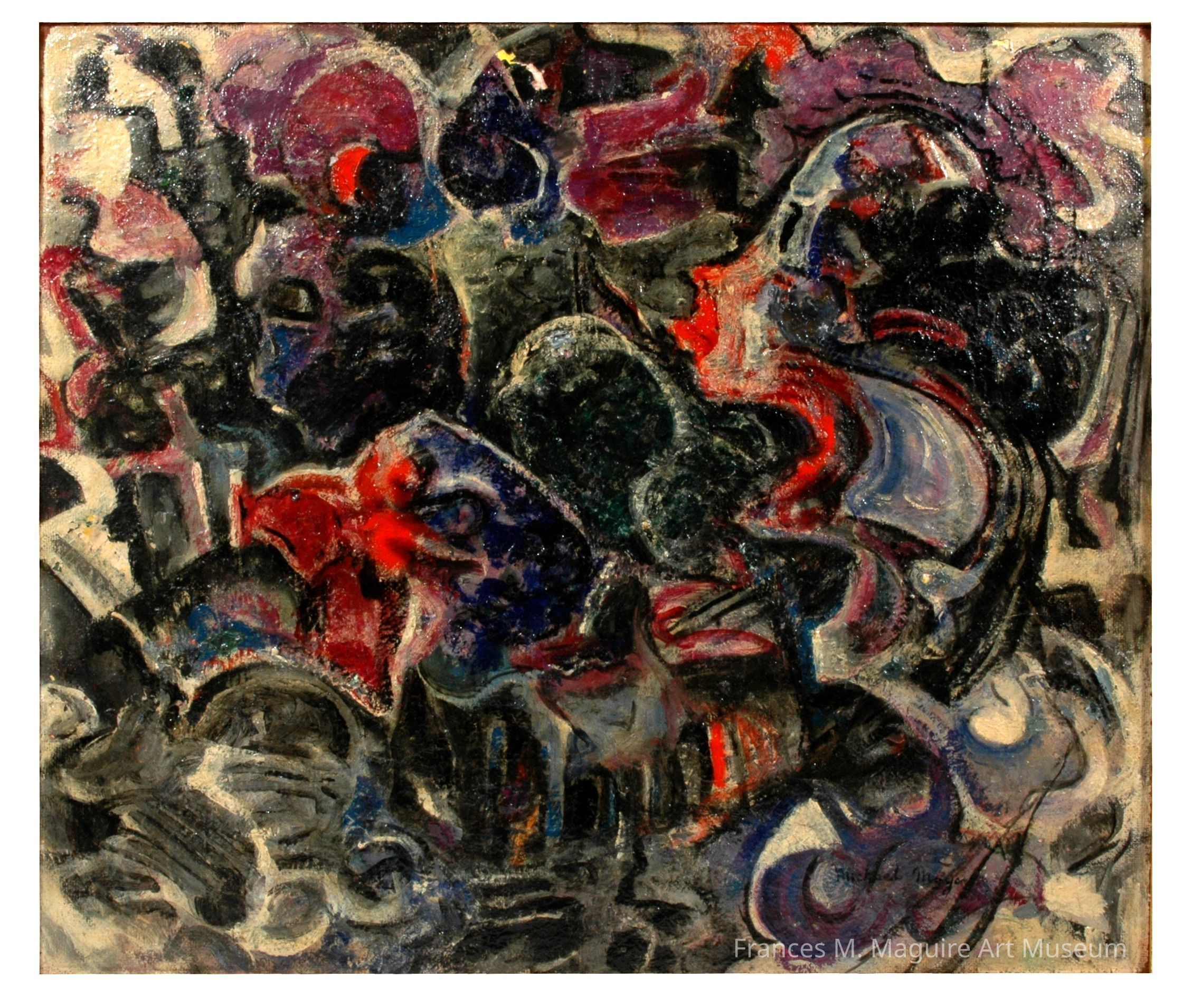 20th-c. oil painting on masonite.Made/Created