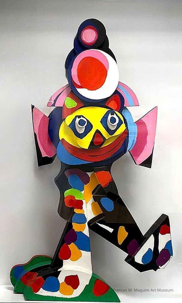20th-c. acrylic-on-wood sculpture of a clown.Made/Created