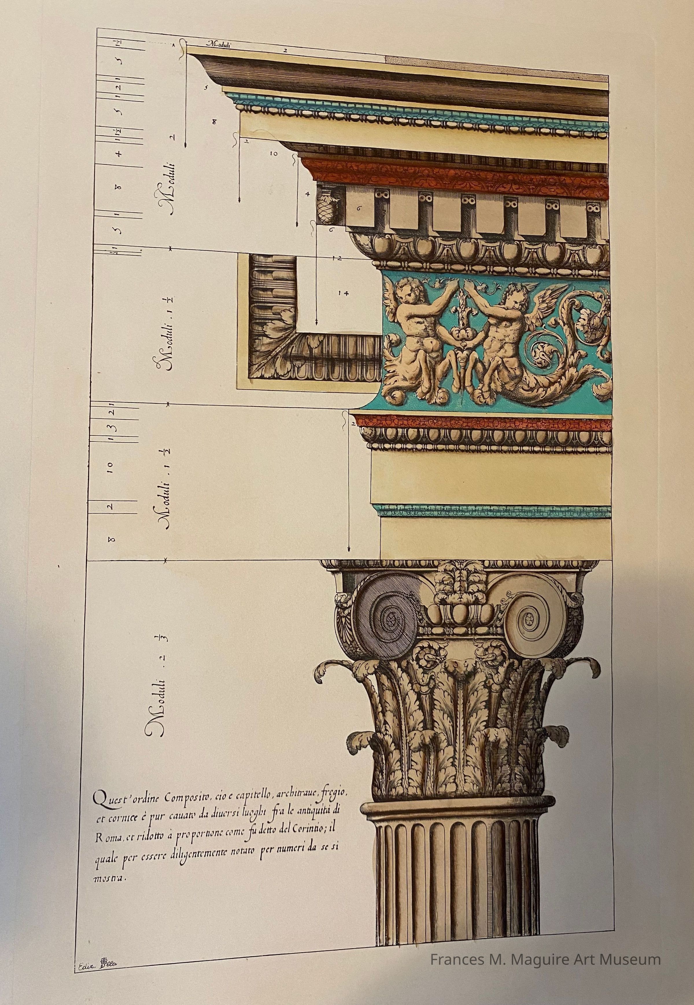 Italian engraved architectural print of the Composite order, which combines parts of the Ionic order with parts of the Corinthian order.