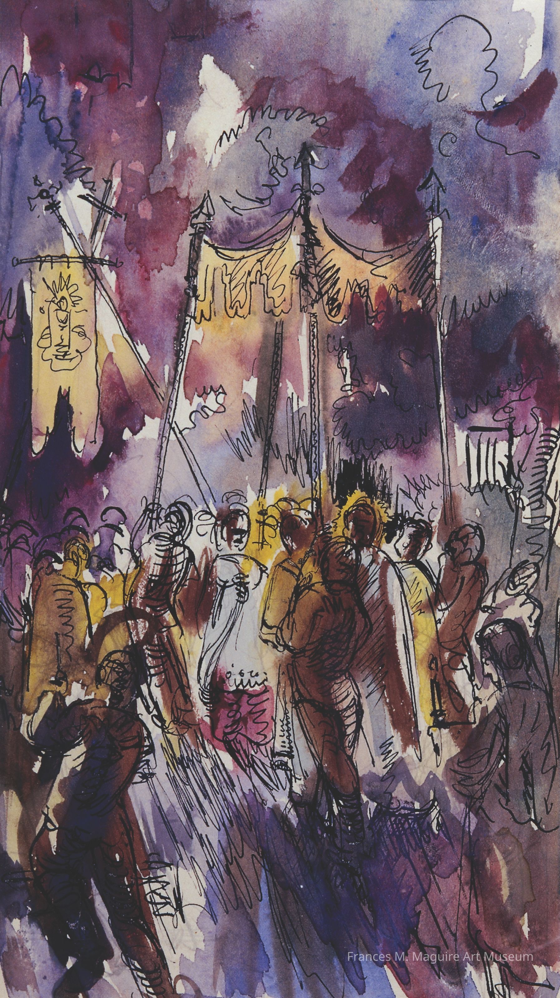 20th-c. watercolor and ink painting.Artwork Details