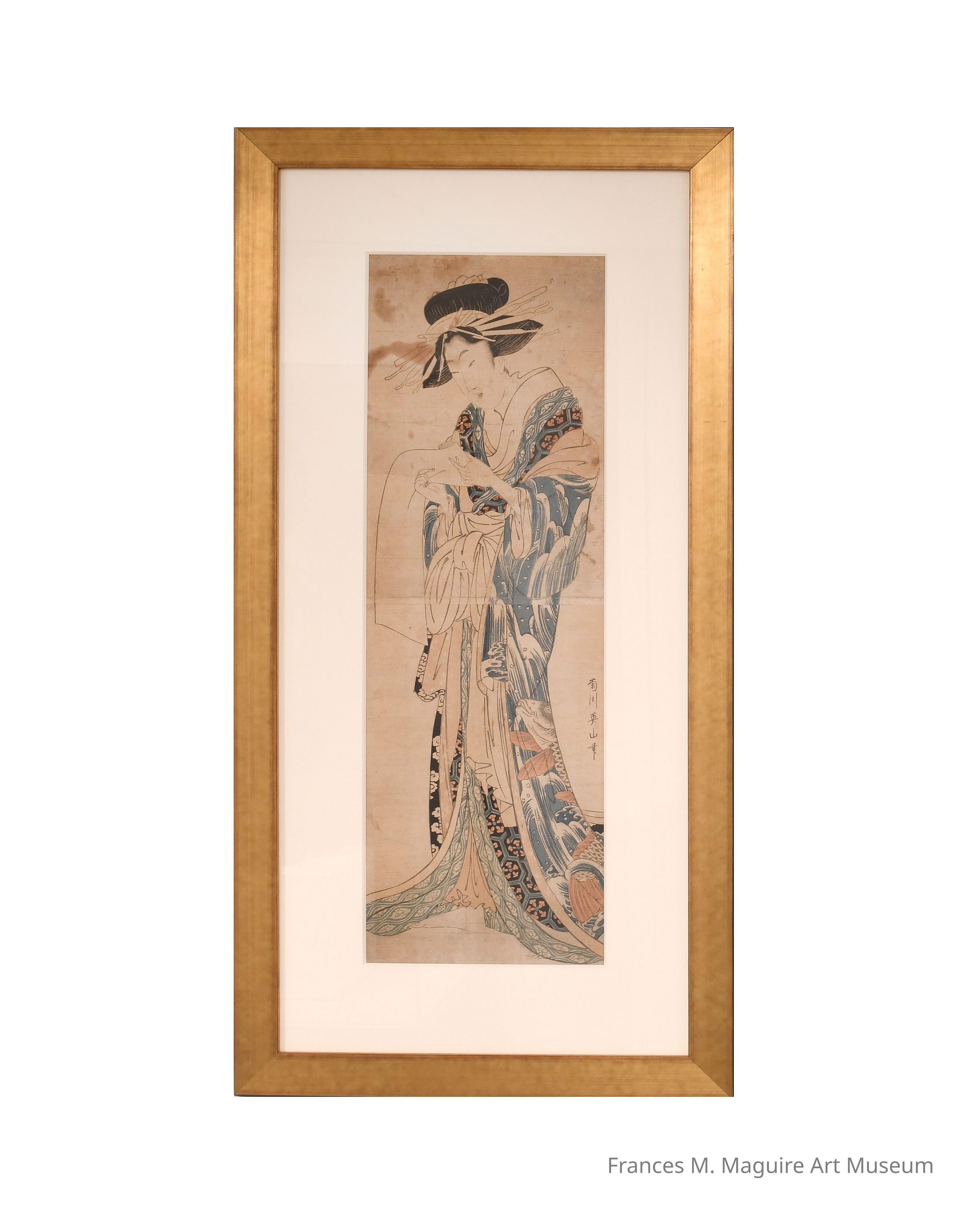 19th-c. Japanese woodblock print depicting a courtesan reading by Kikugawa Eizan.