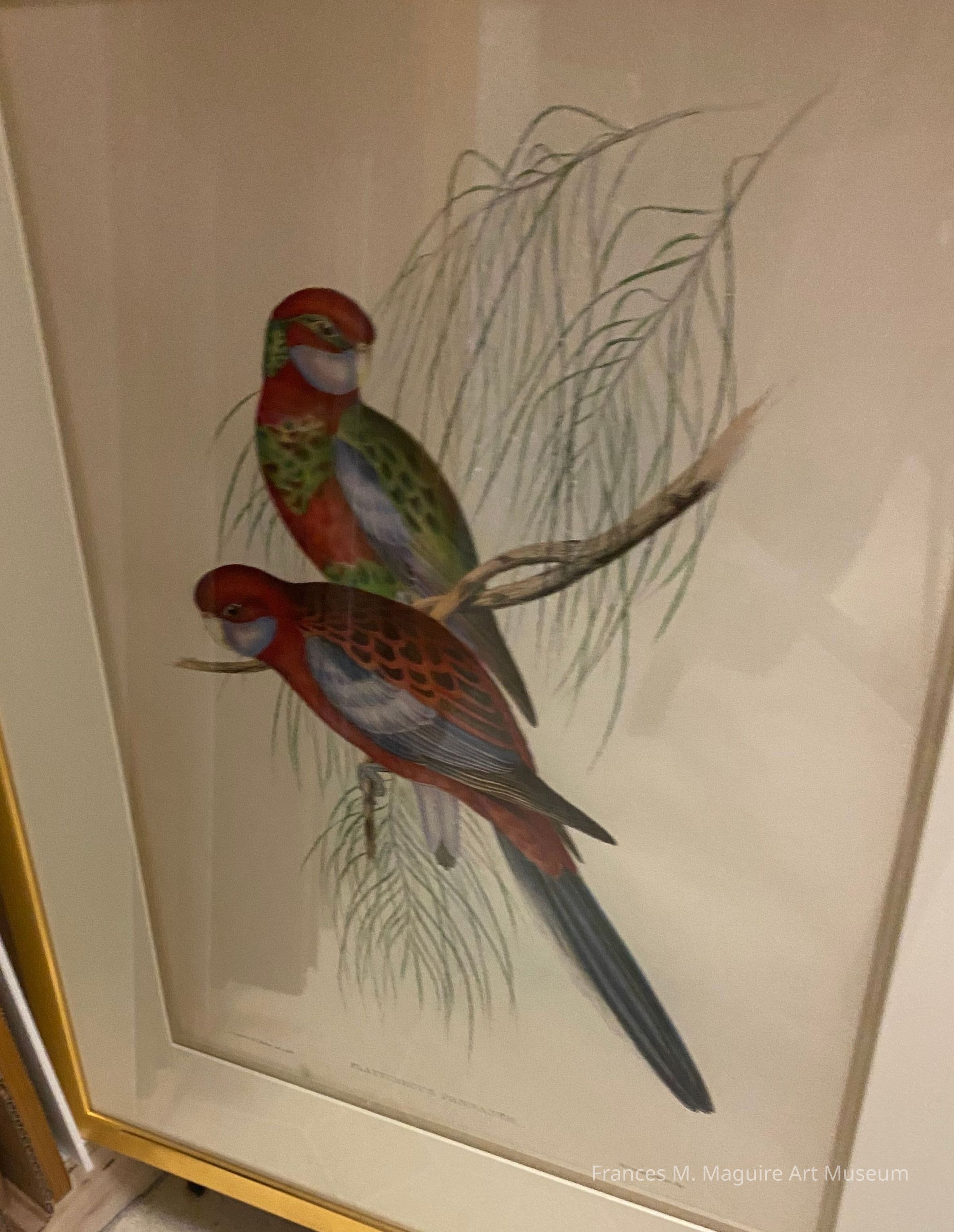 19th-c. ornithological print of two parrots (Platycercus pennantii).