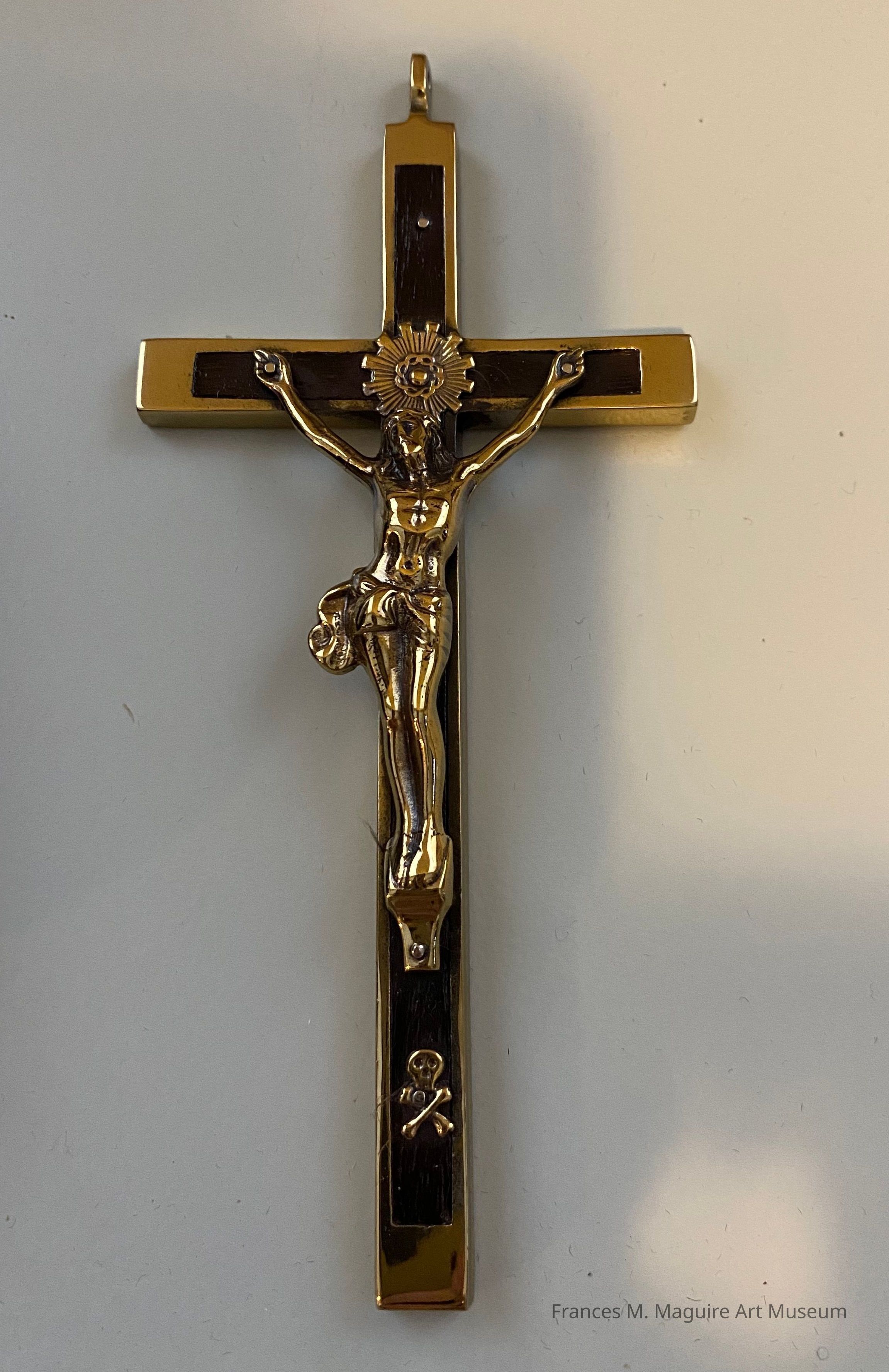 Brass and ebony crucifix pendent.
