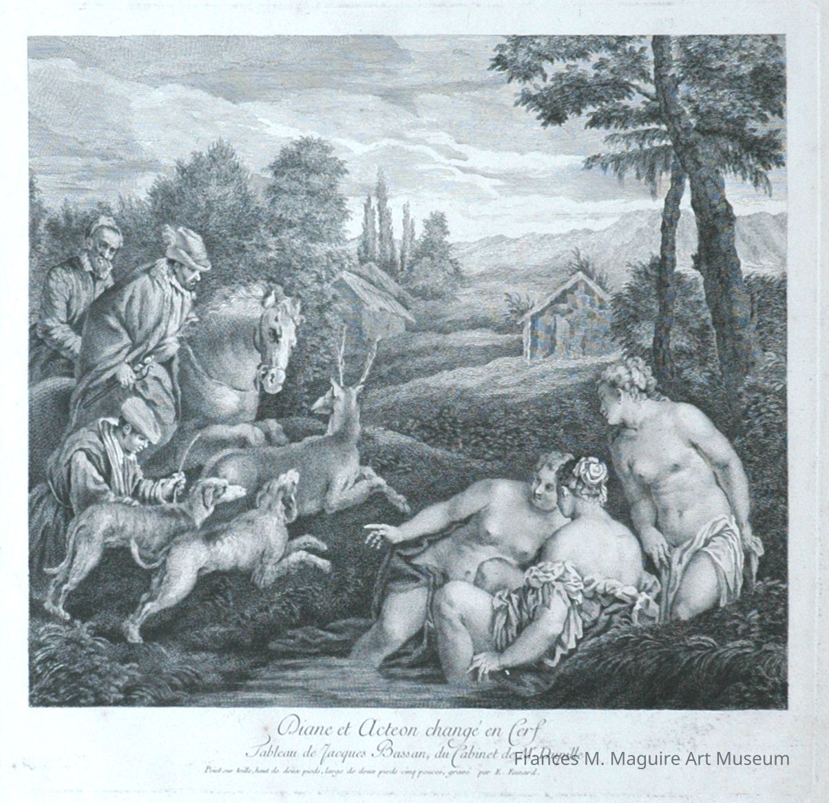 18th-c. print of Diana and Actaeon changed into a deer, after a painting by Jacopo Bassano.Made/Created