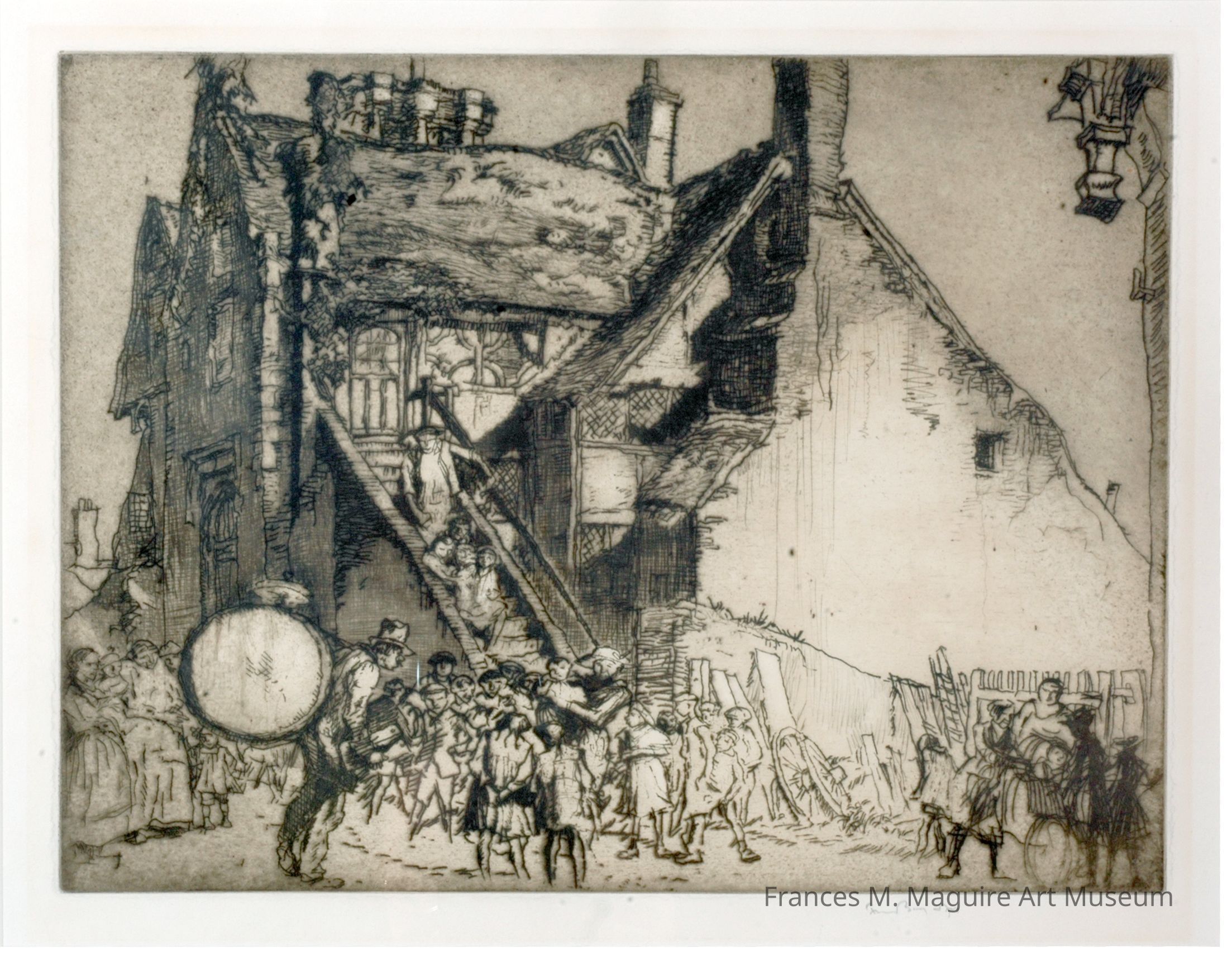 20th-c. black-and-white intaglio print of a street scene in Ditchling, England