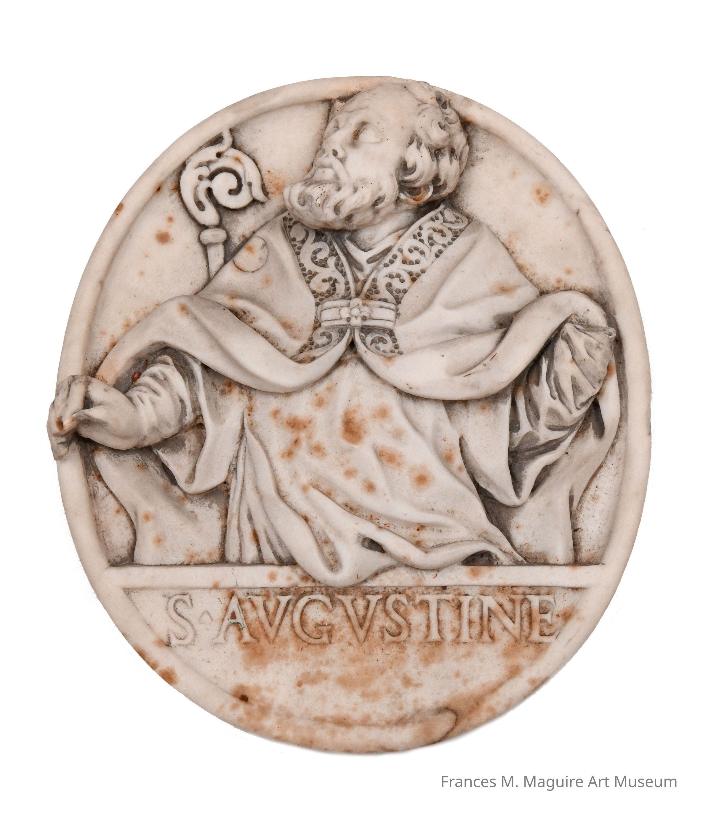 Wall-mounted relief sculpture of St. Augustine of Hippo.