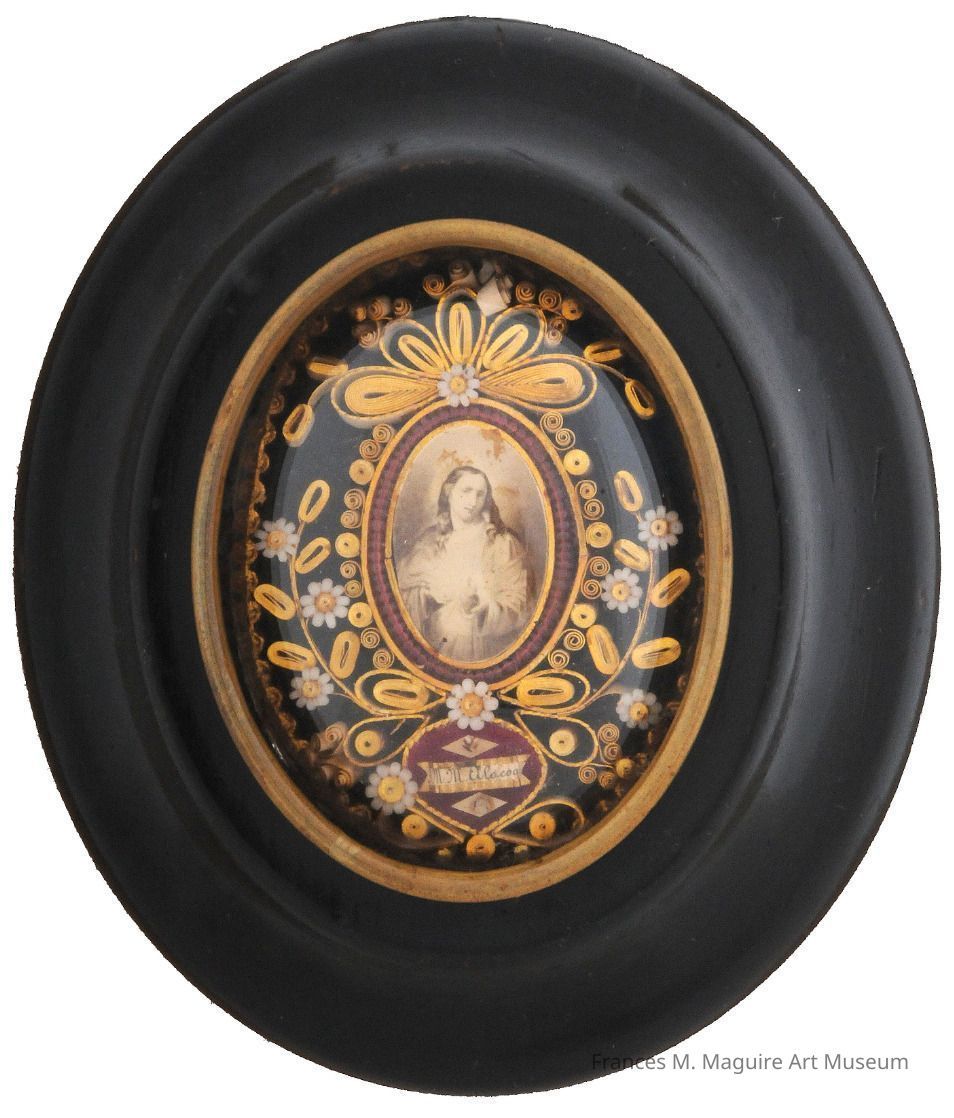 Holy Card? Early-20th c., Mexican? Oval painted image of Jesus on lacework paper surround. “Ecce Homo” printed on banner below, 4.75” x 2.95”.Dimensions
