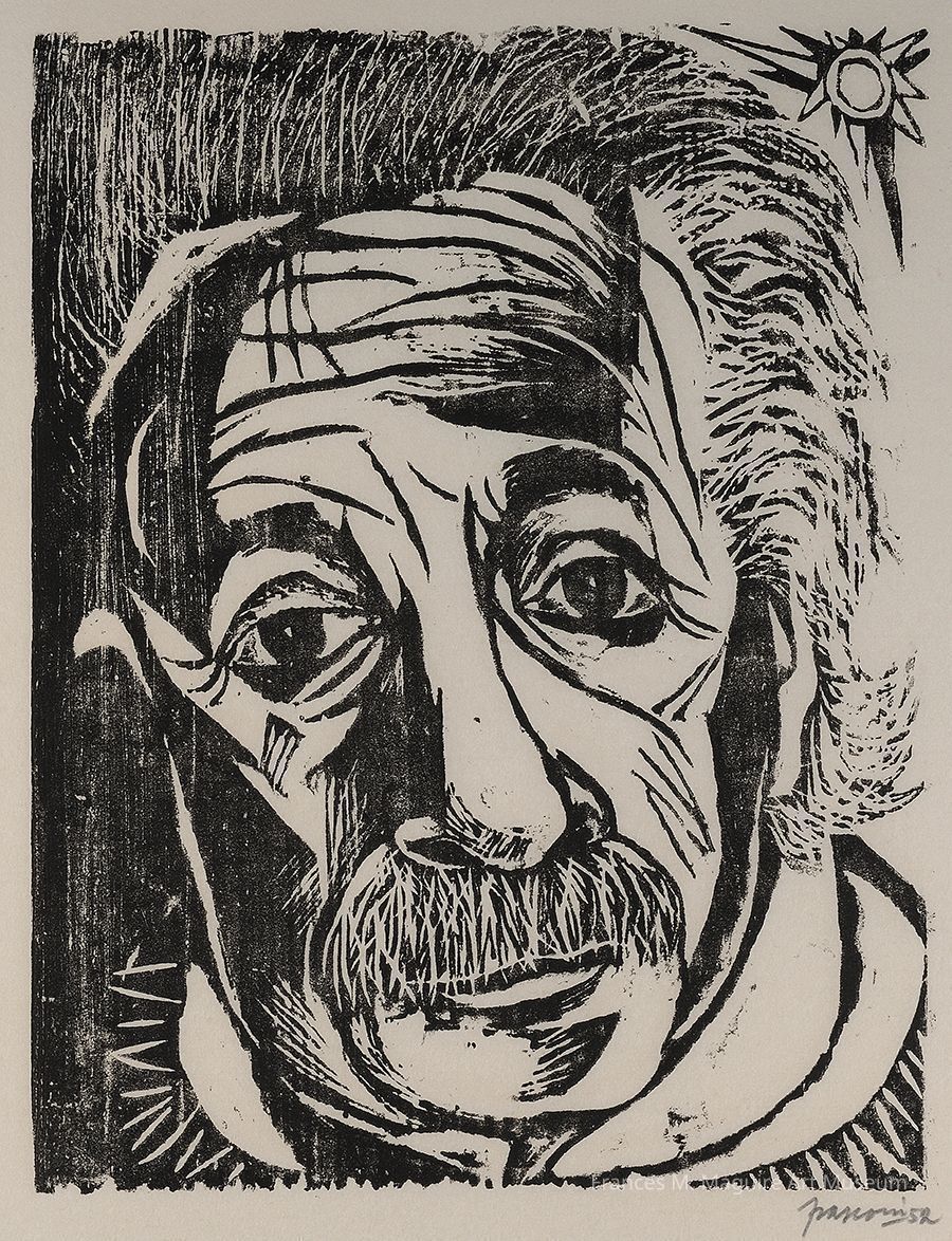 20th-c. woodcut print of Albert Einstein.Made/Created