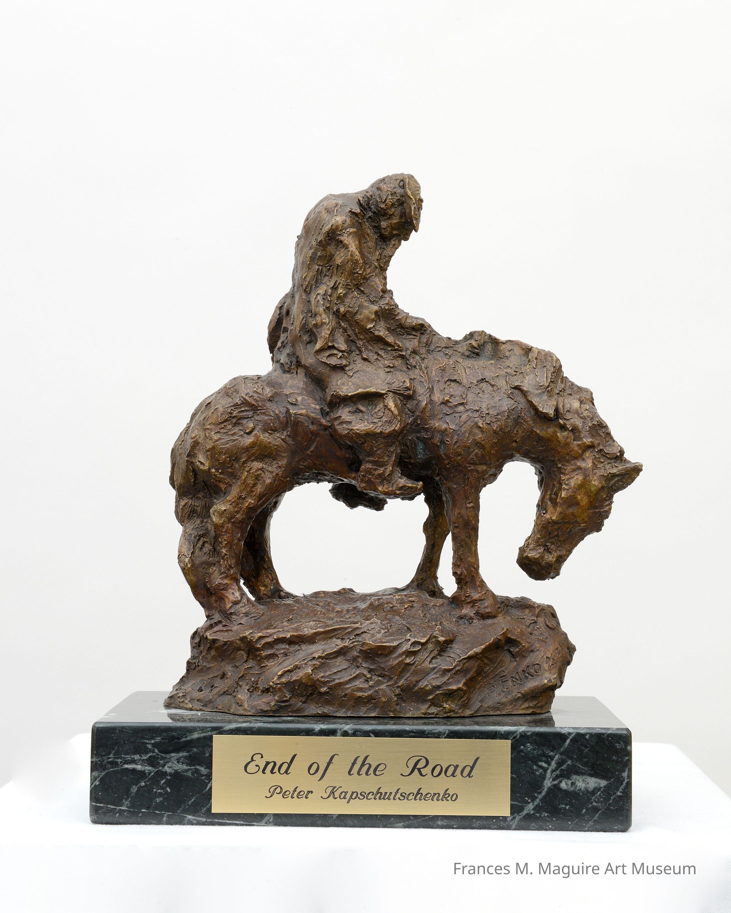 Bronze sculpture titled "End of the Road" by Peter Kapschutschenko.Made/Created
