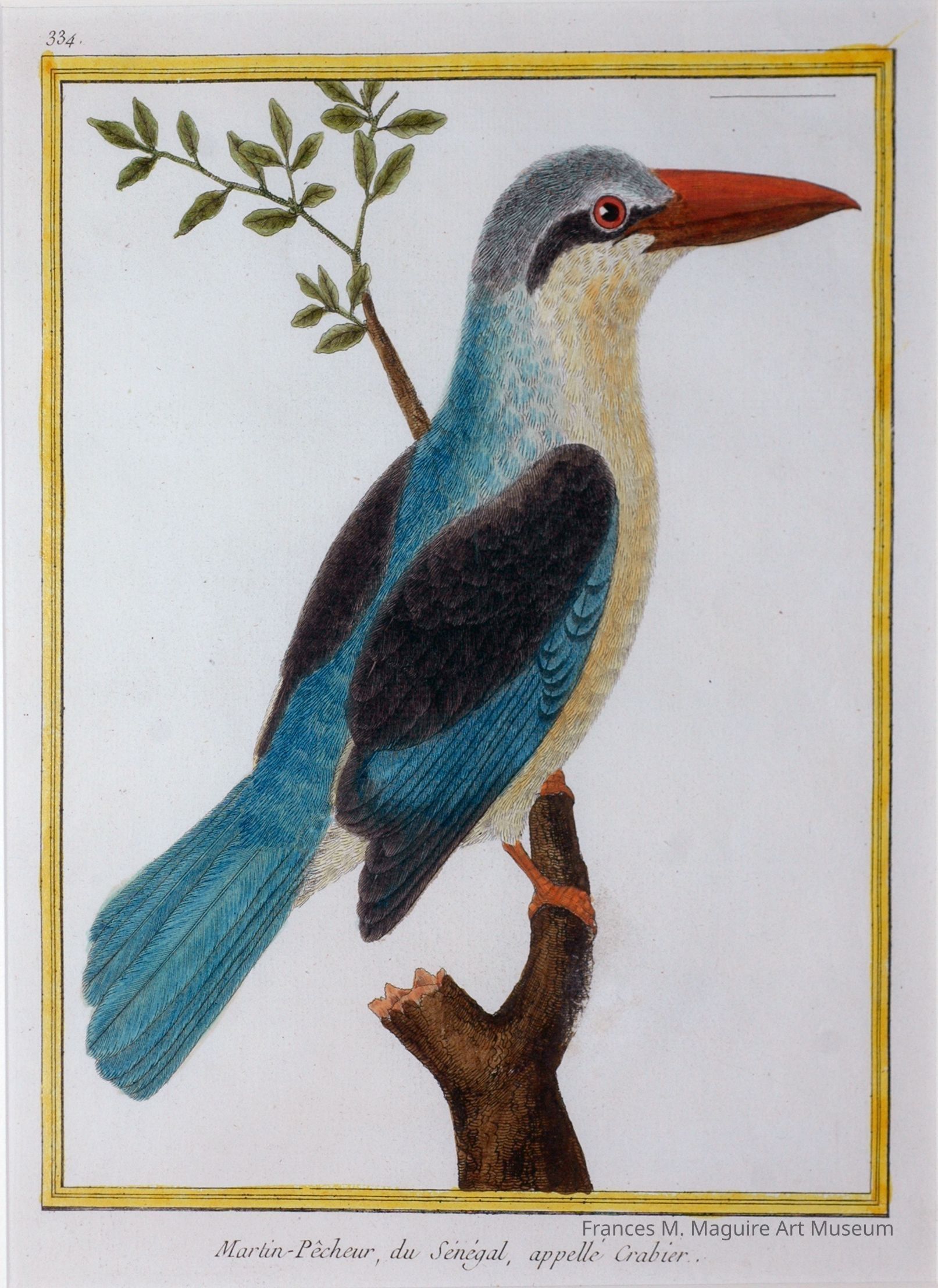 18th-c. hand-colored natural history print of a kingfisherDimensions