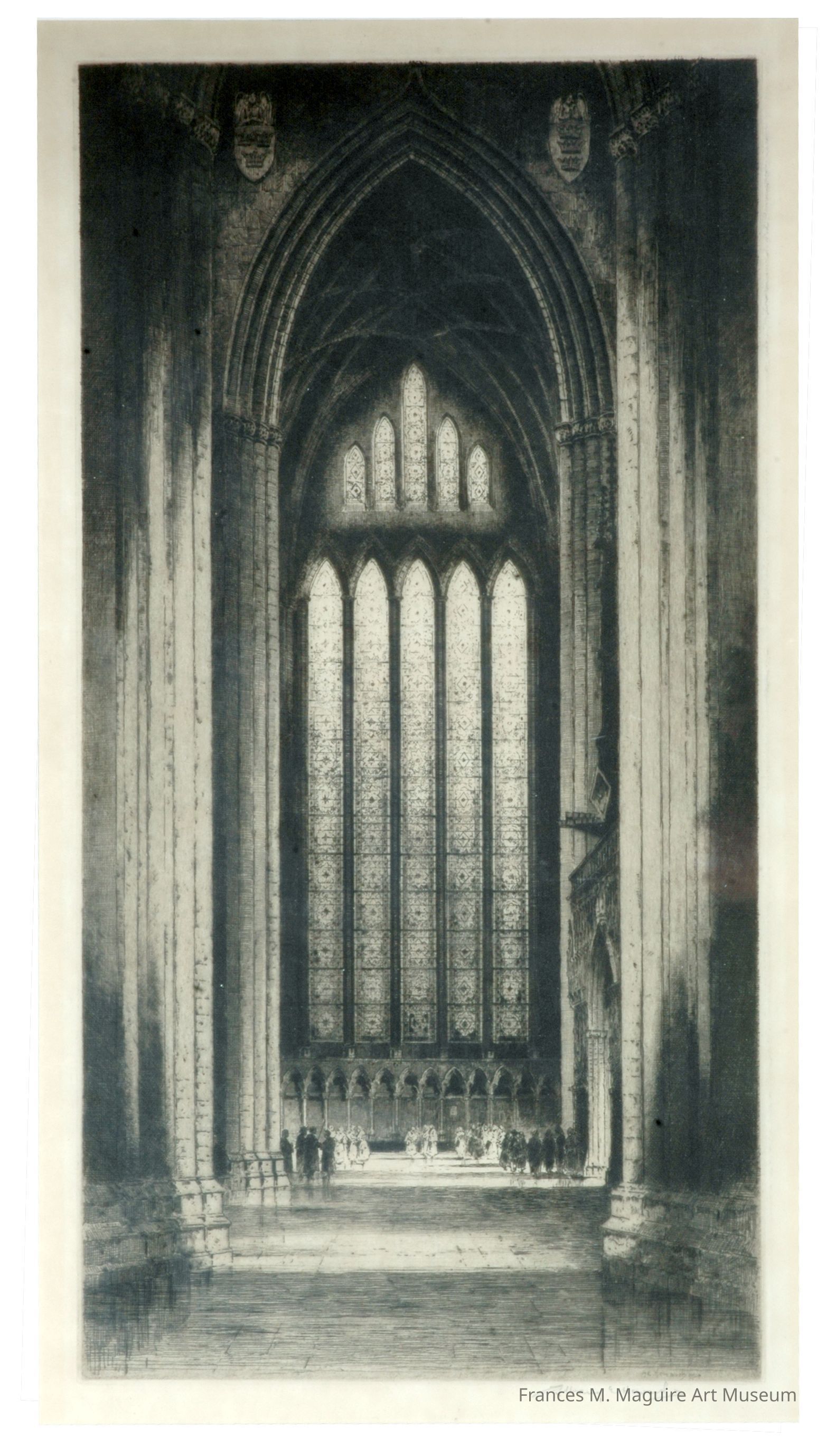 20th-c. drypoint etching of the "Five Sisters window" located in the North Transept of the York Minster Cathedral in York, England.Made/Created