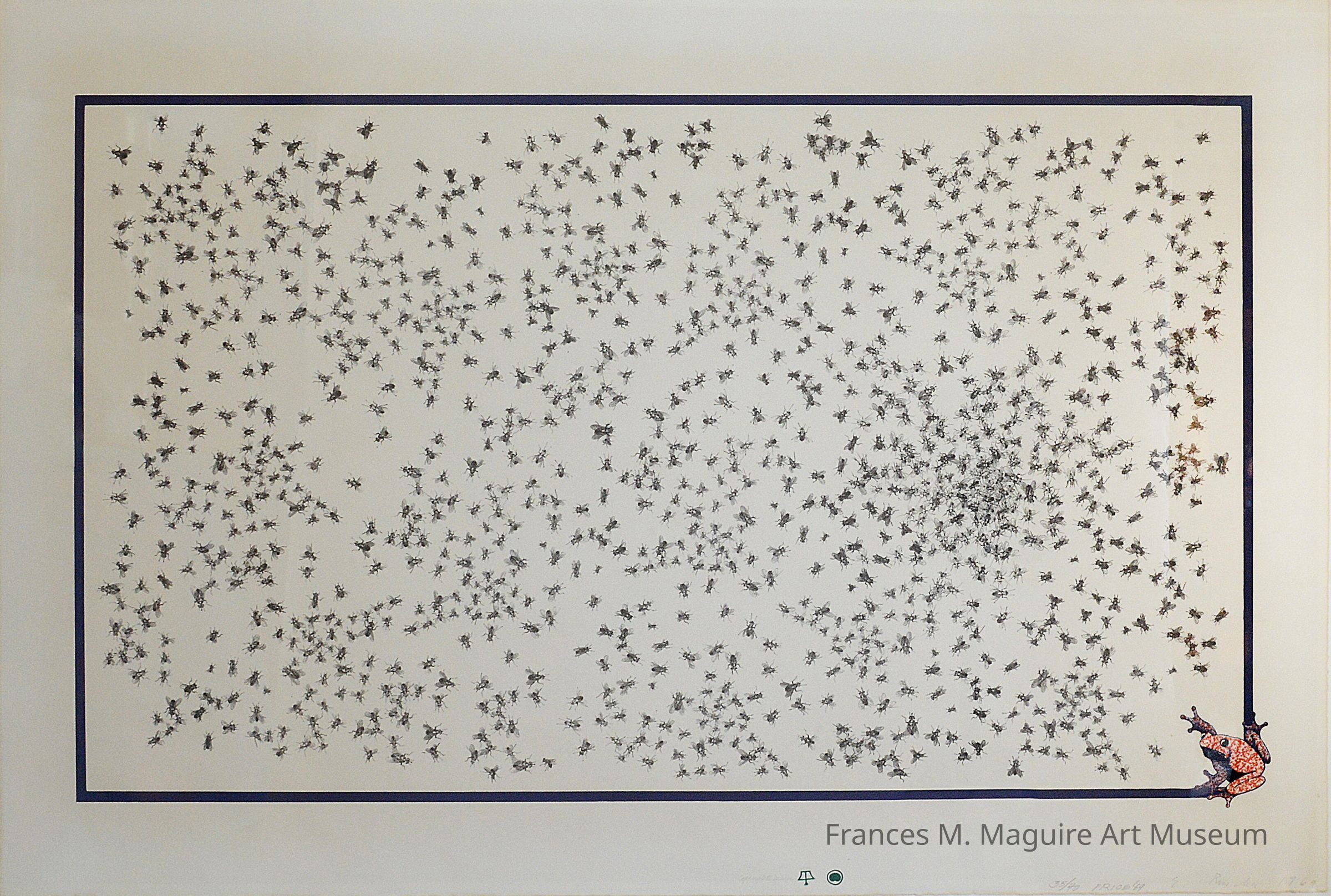 Lithograph of flies with a frog in lower right cornerMade/Created