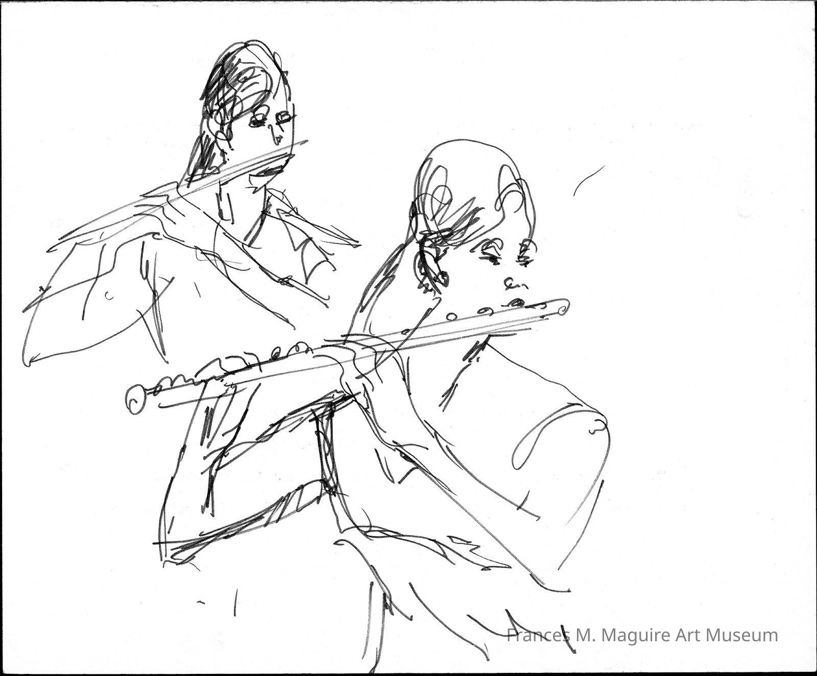 20th-c. marker drawing of two flutists, likely in the Philadelphia Orchestra.Made/Created