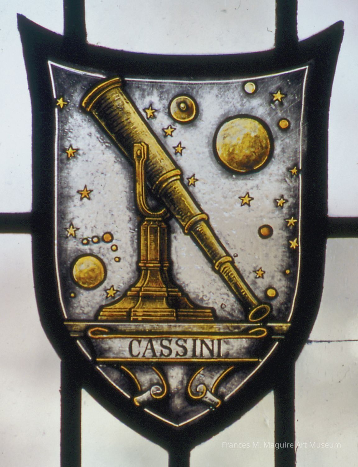 Stained-glass shield commemorating Gian Domenico Cassini (1625-1712), a Italian mathematician and astronomer.Made/Created