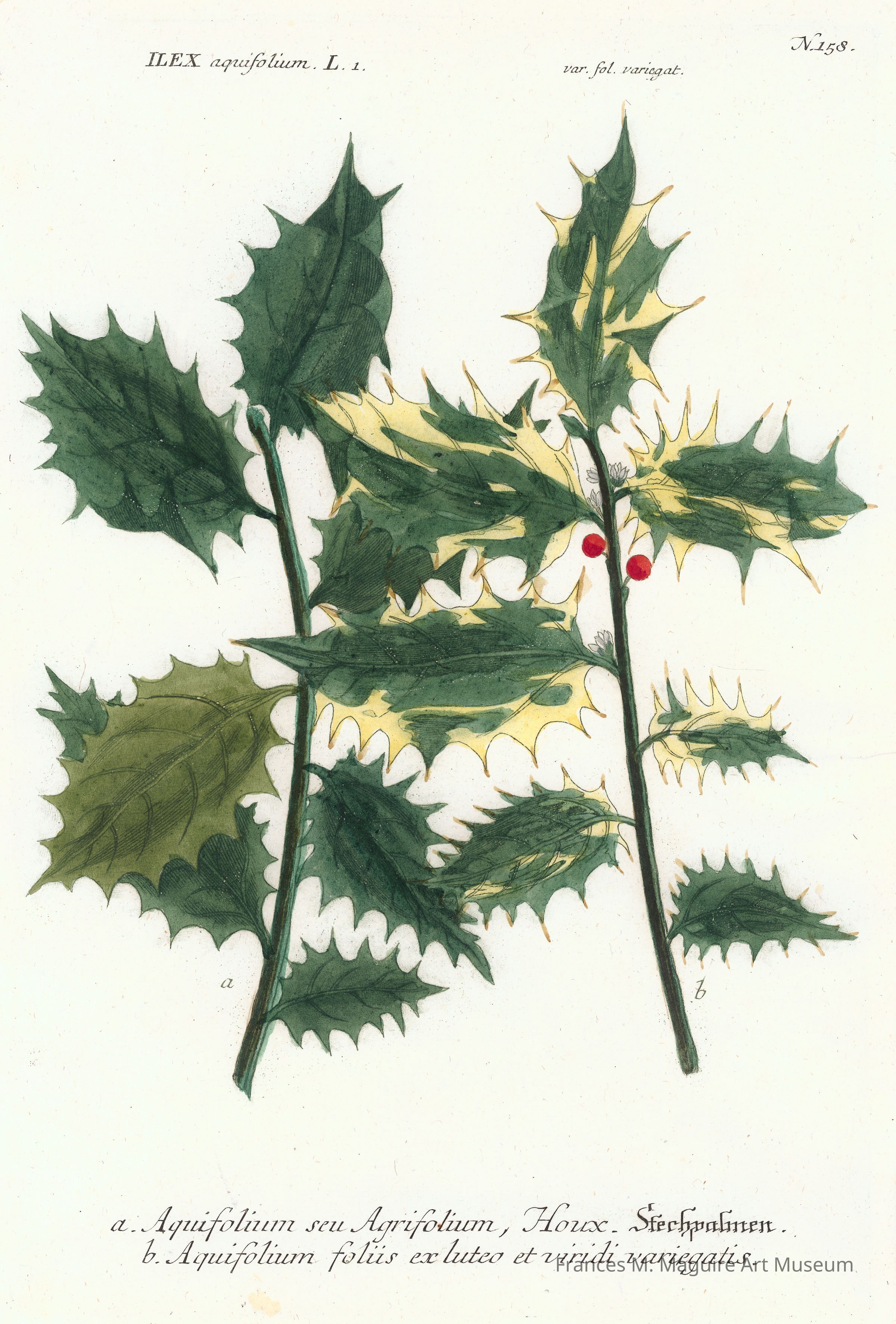 18th-c. hand-colored botanical print of the common hollyDimensions