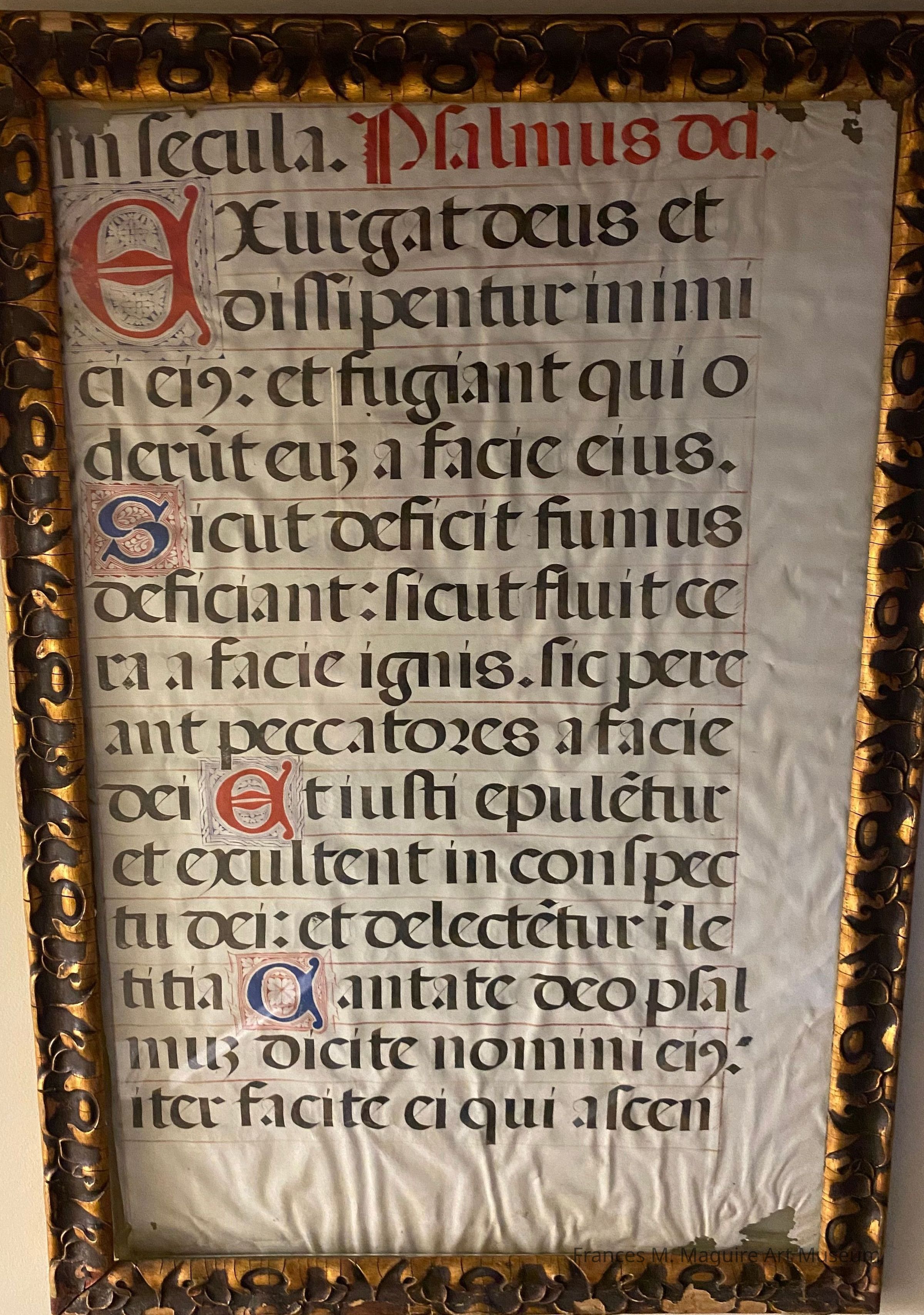 Large-format illuminated manuscript double-sided page from a choir book. Possibly from the 17th c.Dimensions