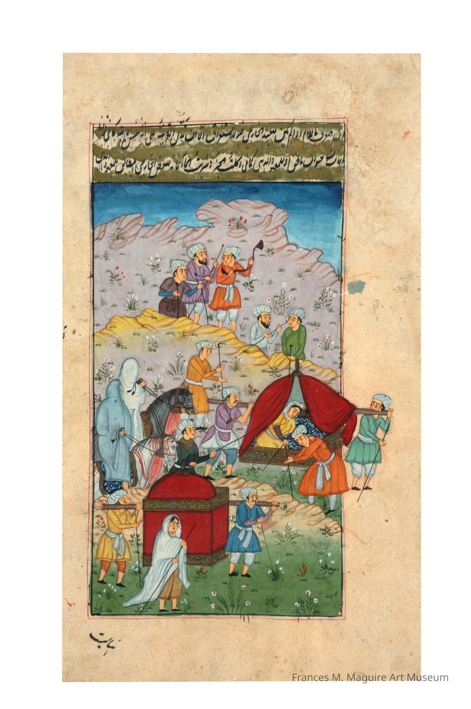 Hand-colored 19th c. illustration from a Persian illuminated manuscript.