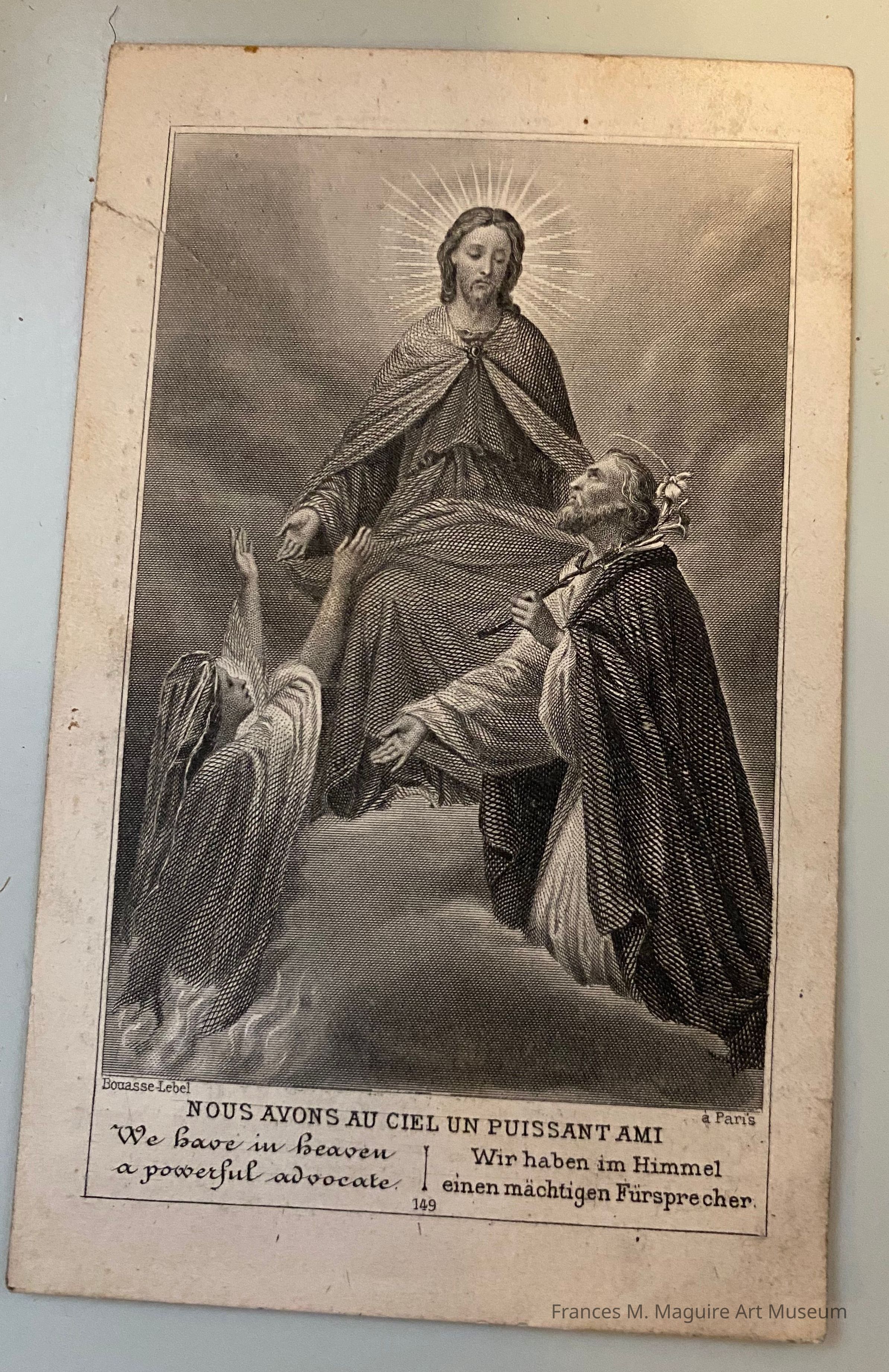 French holy card with a print of Jesus, "a powerful advocate."