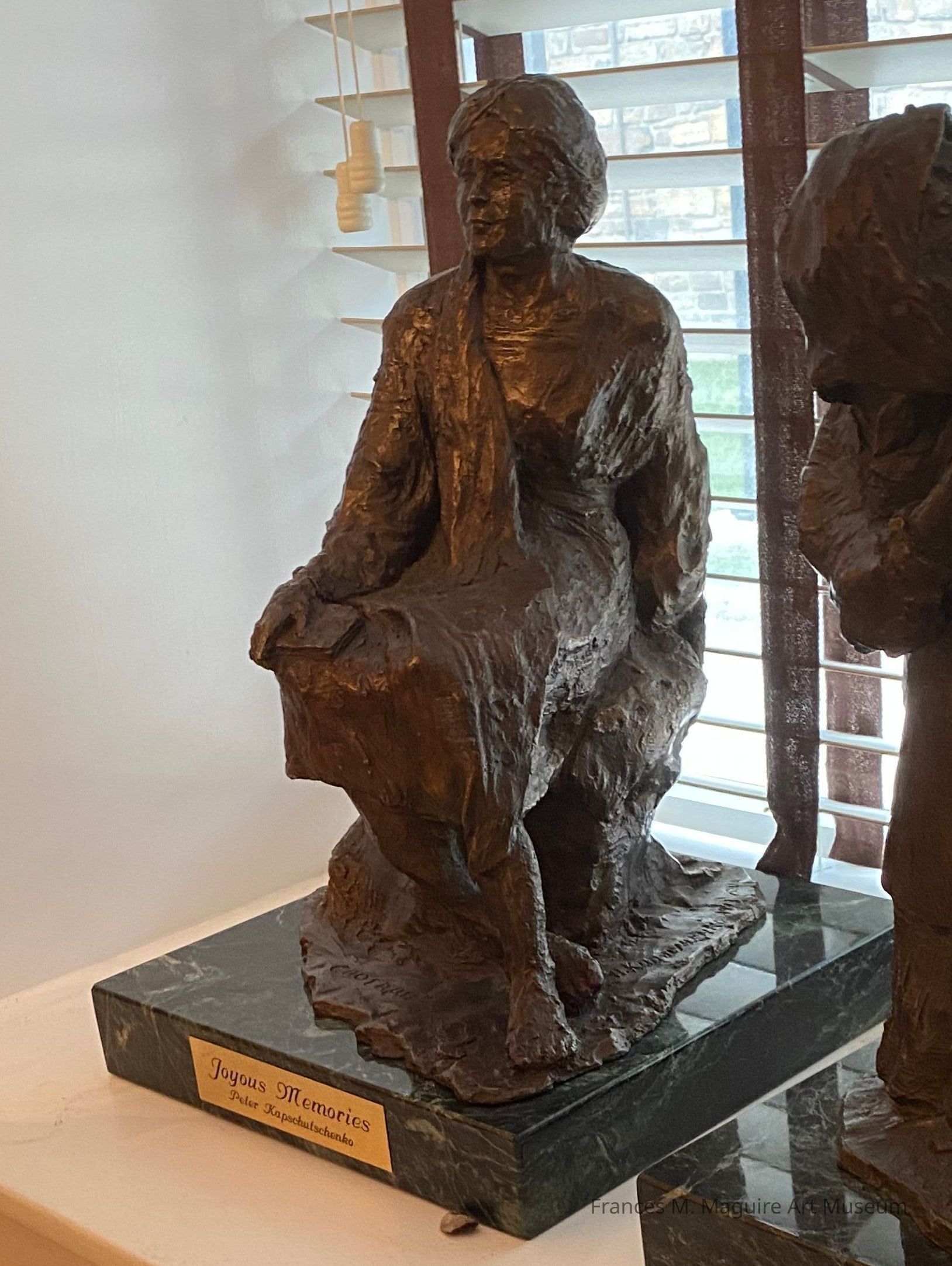 Bronze sculpture of a woman sitting.Made/Created