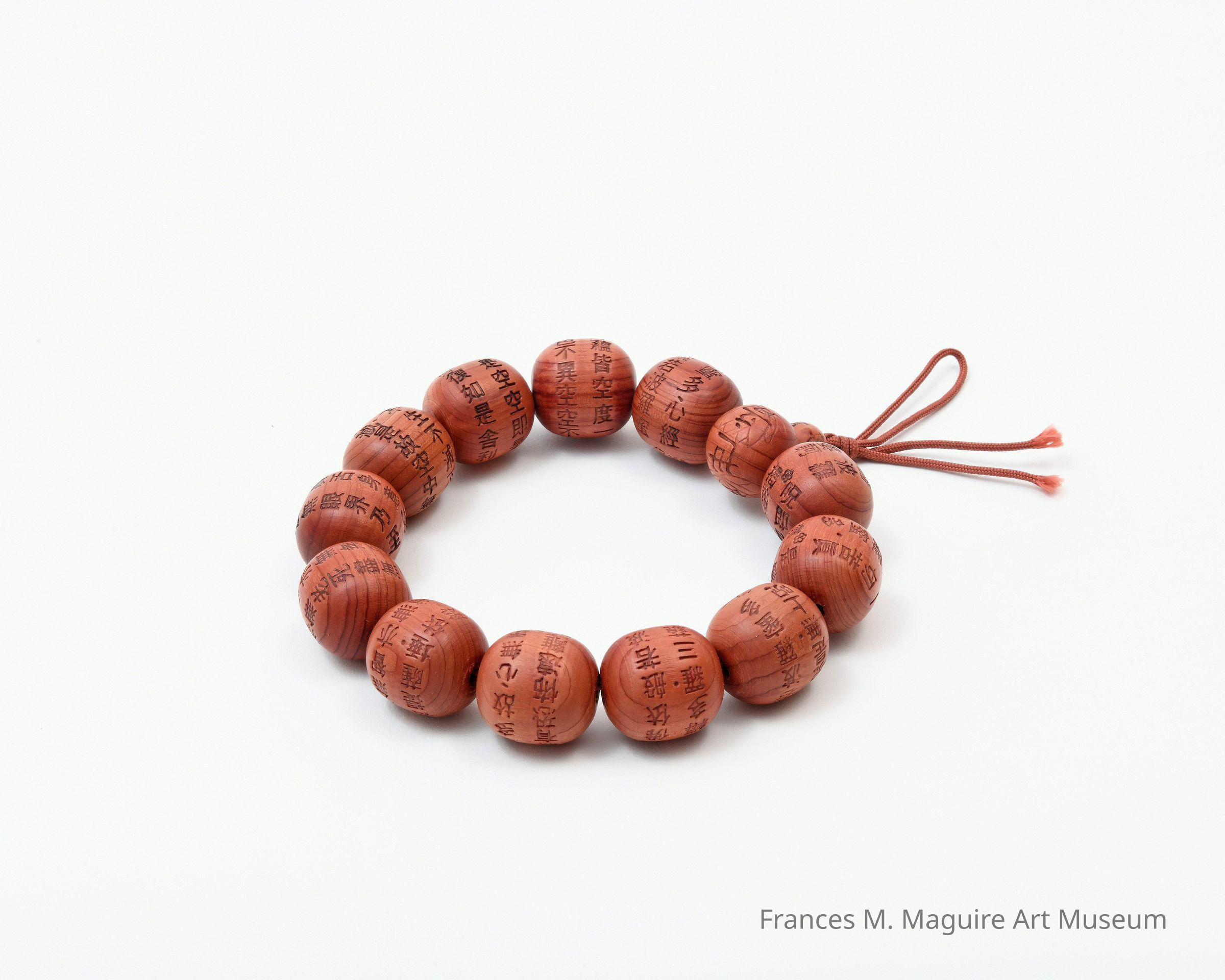 20th-c. Korean hand malas or prayer beads made of cedar wood. The beads are inscribed.